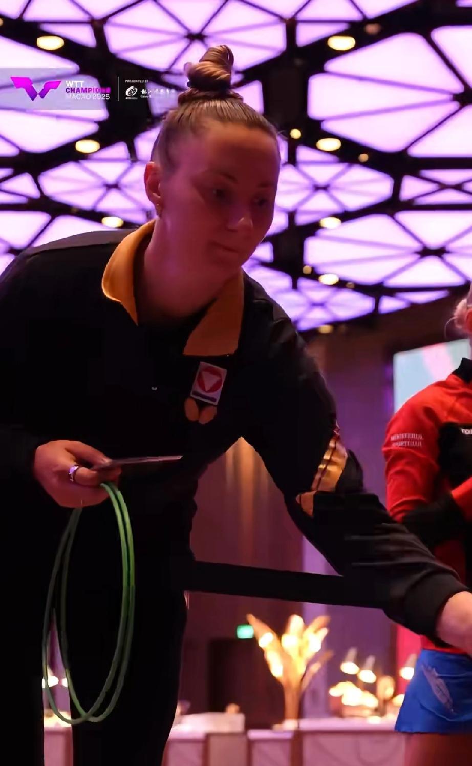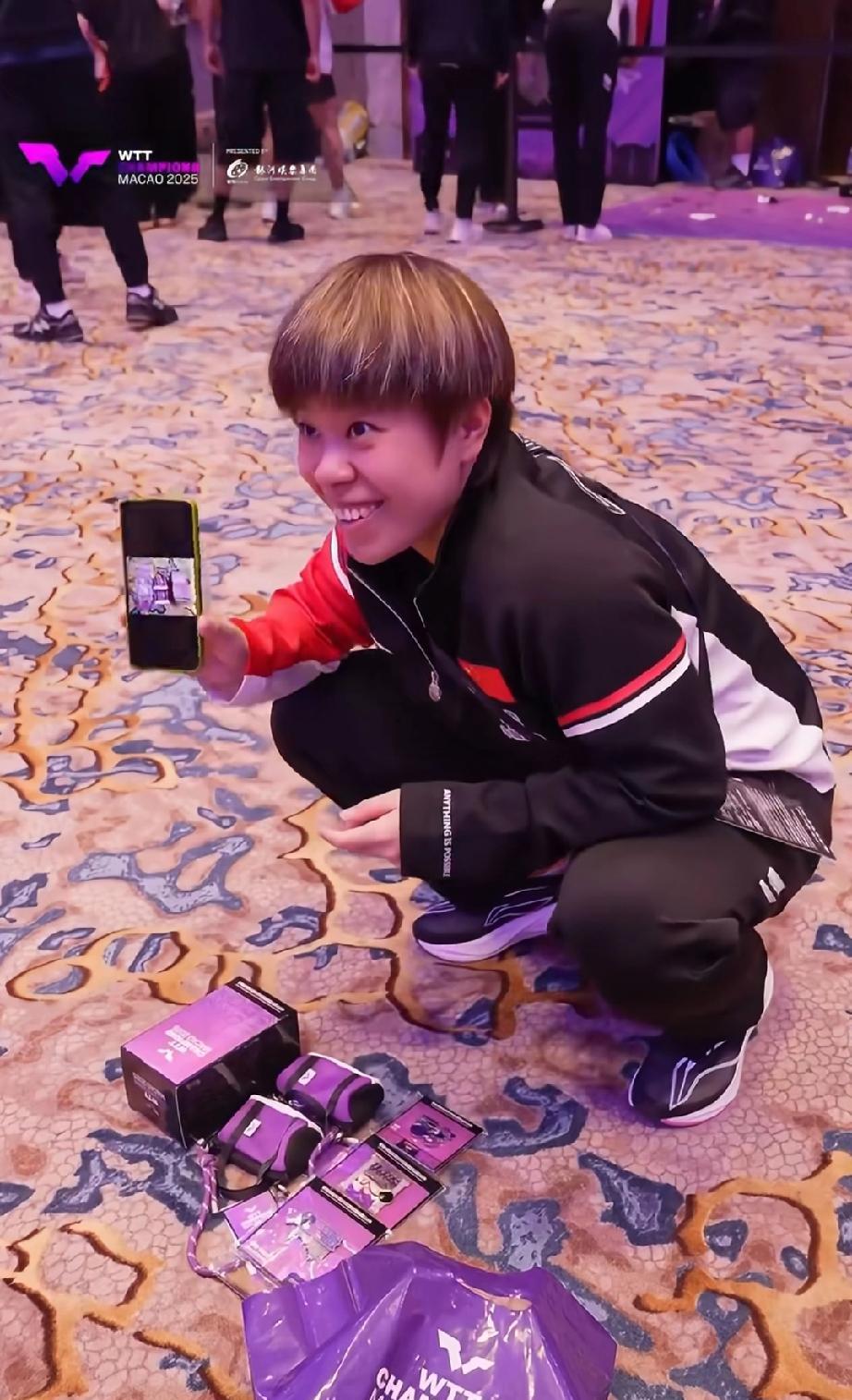哈哈大迪好开心,就她的战利品多 大家都来套圈了,玩得都挺开心,大白鹅和斯佐科斯也套中了,还展示了她们的奖品。 莎莎、蒯曼、汉娜高达也都套了,不过没有看到她们的奖品[笑哭] 郑怡静头飞机没中那表情也太可爱了。 大迪这次签位较好,没有什么压力,第三轮就能和莎莎会师,快乐乒乓! 难怪大迪这么轻松快乐!