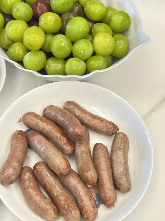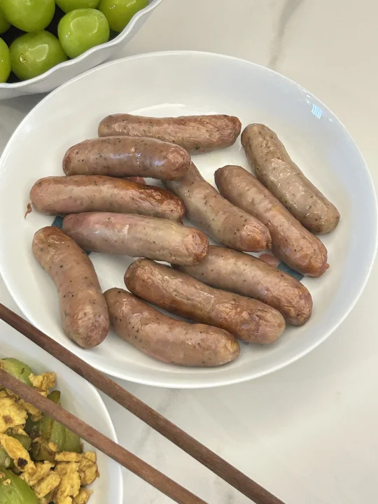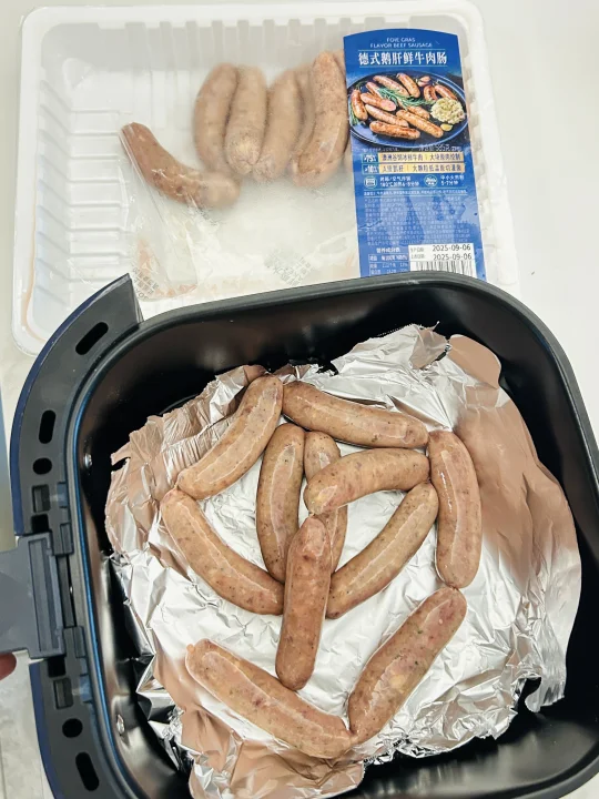 10分钟搞定这份美食,朋友都追着要 周末招待朋友一起吃饭 给她们弄了山姆这款德式鹅肝鲜牛肉肠 全部光盘,还追着问我要🔗 - 这款的话,主要是鹅肝+牛肉的双重暴击, 稀有口味真的yyds 鹅肝颗粒肉眼可见, 澳洲谷饲牛肉含量更是高达75% 一口咬下去, 外脆里弹,立马爆汁 用空气炸锅10分钟就完美搞定 很香,汁水狂飙,完全不塞牙 再搭配其他菜品,真的饱腹感满满