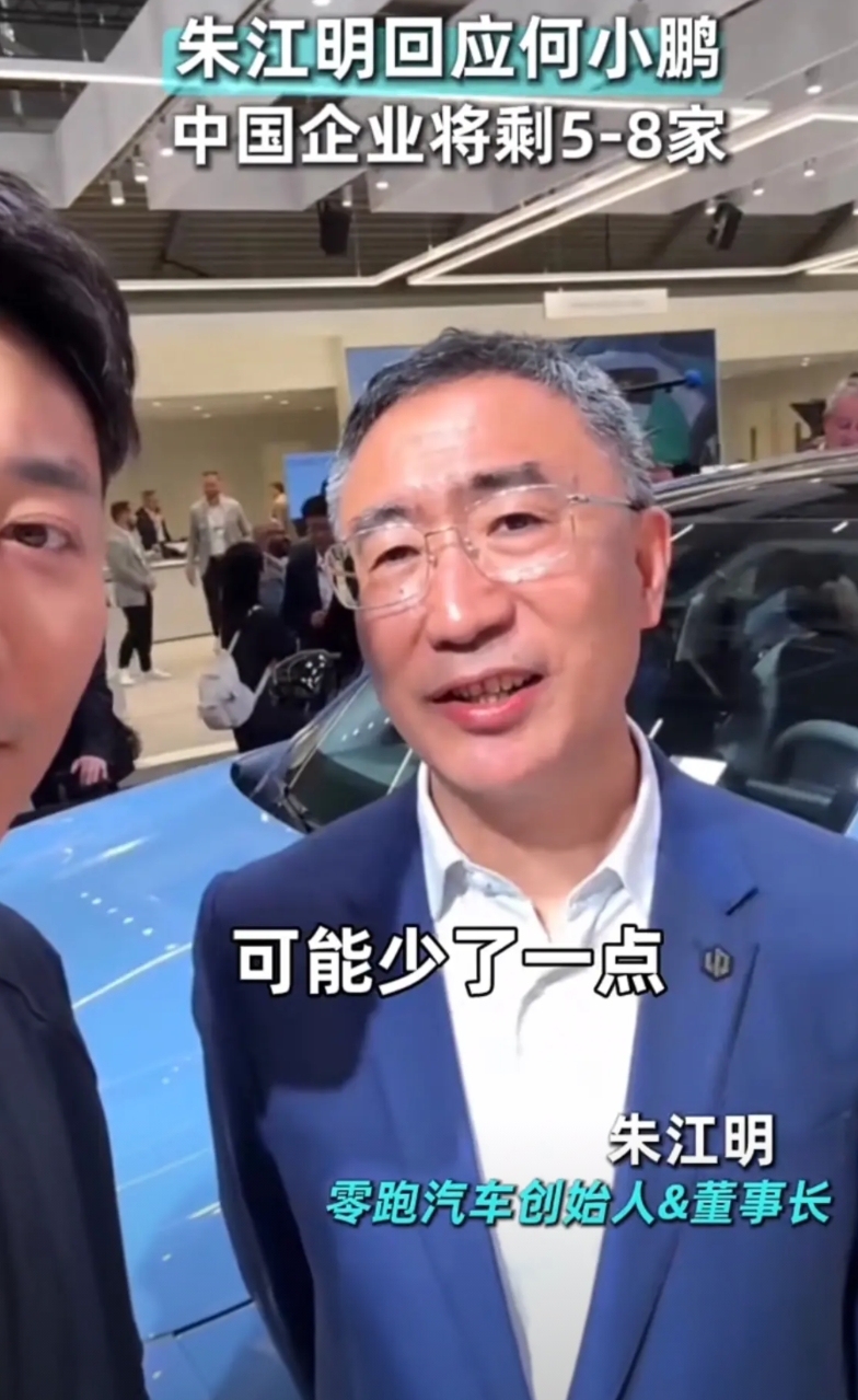 朱江明比魏建军和何小鹏胆子还大,竟然在慕尼黑车展上回应何小鹏“未来中国优秀的汽车品牌可能只会剩下5家,甚至只有3家”的观点时表示,3-5家可能少了一点,可能5-8家,这个可能性还是比较大的。那么将来5-8家车企会是谁?有零跑汽车吗?比亚迪,小鹏汽车蔚来汽车理想汽车,问界,长城汽车,长安一定存活,大家认为呢? 朱江明还介绍了零跑的全球化成果,借助Stellantis集团资源,零跑已在超30个国家和地区布局,销售和服务网点超1700家,2025年1-8月全球累计交付超32万台,海外超3万台。他对海外销售预期乐观,称单日订单超5000,海外月销4000左右,预计明年出现月销10万的节点。最后为中国车企加电,零跑在国内卖的好,那么在国外也会越卖越好,就像丰田车一样,走路就有丰田,以后是不是有路就有零跑汽车呢?