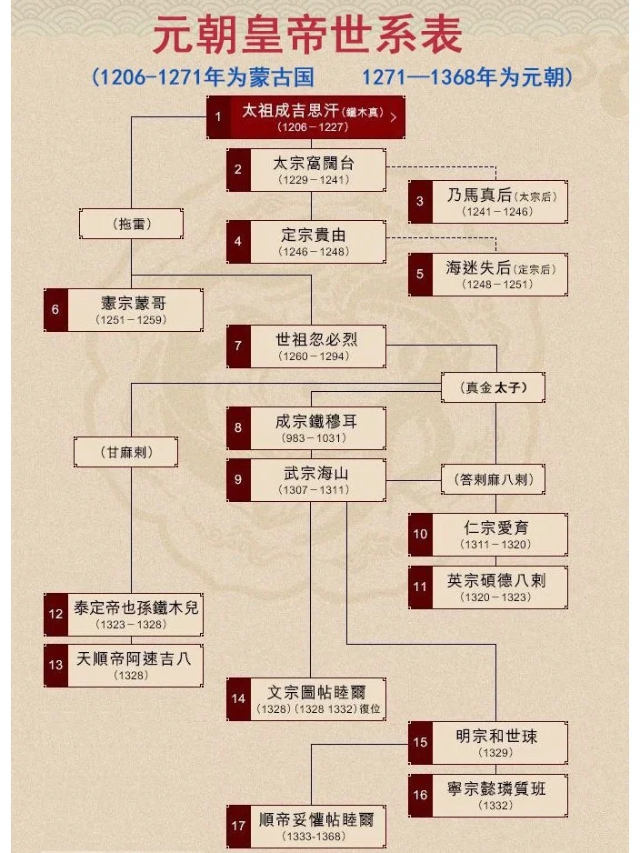 12.元明宗,和世㻋——为弟洗白,在位183天。13.元文宗,图帖睦尔——元蕞博学皇帝。长于汉地,有修养颇建树。建奎章阁,编《经世大典》,阻止文化返祖,政绩平平。