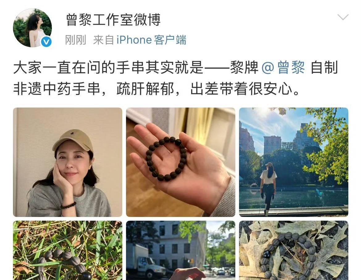 曾黎的口碑救不回了! 9月9日,曾黎工作室晒出曾黎手上佩戴的手串,说是中药制作的