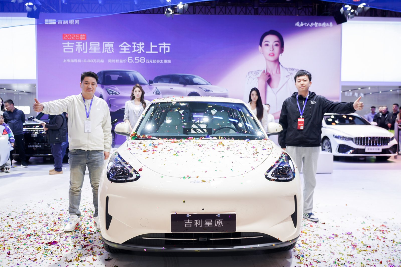 在全场期待的目光中,吉利银河陕晋区域经理高仰东及吉利银河太原宛舟店总经理侯旭东在主持人邀请下登台,共同为全新座驾揭开帷幕,标志着2026款星愿在太原市场正式启航!聚光灯下的2026款星愿款款而至,它的惊艳亮相将现场气氛推向高潮,引来阵阵掌声!