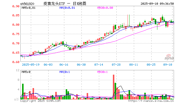 9月10日,疫苗龙头ETF(561920)开盘涨0.99%,报0.817元。疫苗龙头ETF(561920)重仓股方面,智飞生物开盘跌0.18%,万泰生物涨1.87%,沃森生物涨0.08%,康泰生物涨0.00%,辽宁成大涨0.08%,山东药玻跌0.09%,君实生物涨0.50%,复星医药涨1.04%,华兰生物跌0.53%,甘李药业涨0.54%。