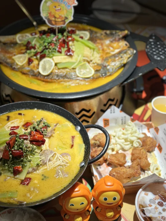每次在高新大都荟逛街到没电了,我都会来探鱼给自己补充一下能量,然后开起下一场的冲刺! 浅浅吃个酸辣金汤烤鱼酸爽扑鼻,鱼肉饱满嫩滑,入口就让人心情变好。 酸辣金汤肥牛锅同样是重磅惊喜,高品质的安格斯肥牛片浸在酸辣汤里煮熟,香气四溢,原始的吃肉就是这么纯粹。 干拌黄金豆腐焦香四溢,口感外酥内嫩,蘸着酸汤吃更上头。 再搭配一份嚣张冰桔桶,冰爽解腻!又有电去看电影了~
