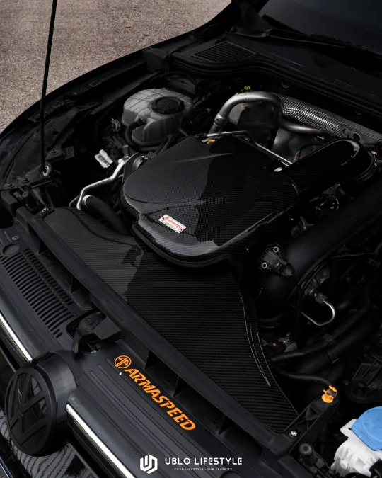 大众高尔夫8代 1.4T R-Line,虽然还不能刷Tuning,但是改装件一样可以有😌Armaspeed实现了既美观又实用的碳纤维进气,为这辆车增添了改装的乐趣😜