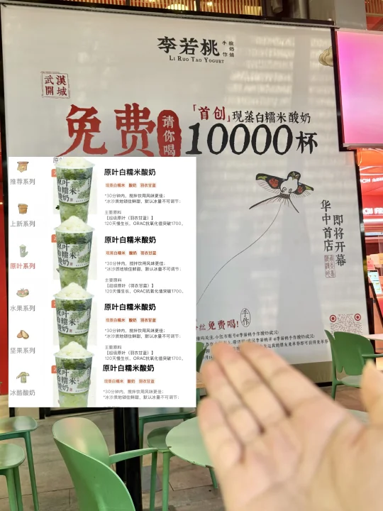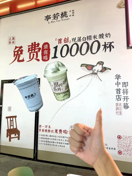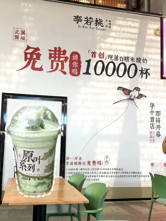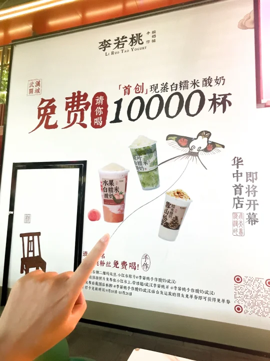 之前去重庆喝过,一直碎碎念武汉没有李若桃! 没想到在武汉天地,偶遇看见了即将开业的围挡! 老板大气请客10000杯,本月26号~28号就开业啦🧨 奶茶喝的很多,但他家的特色是你想不到的 是现蒸白糯米➕酸奶👍🏻,现蒸白糯米酸奶是他们家特色也是首创!就爱喝这一口!哈哈,开业后我要把所有饮品尝个遍!