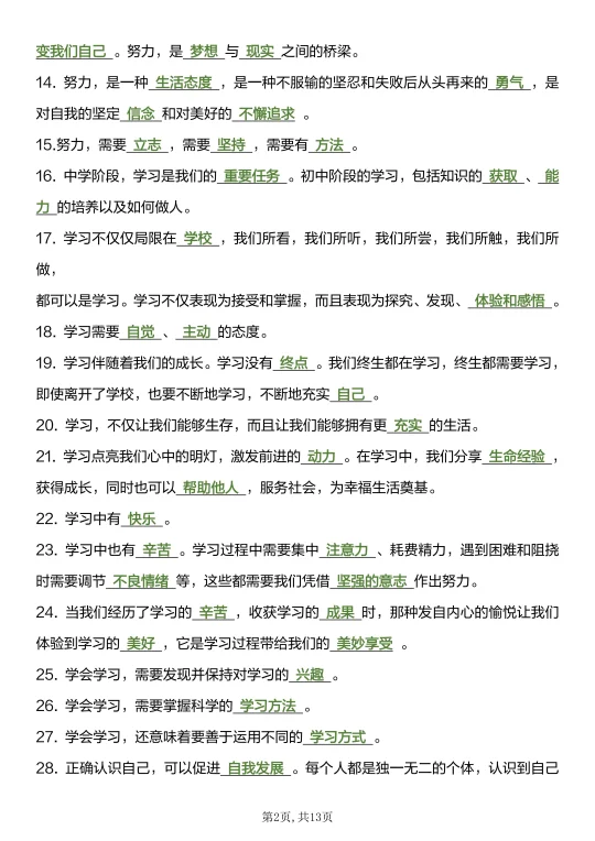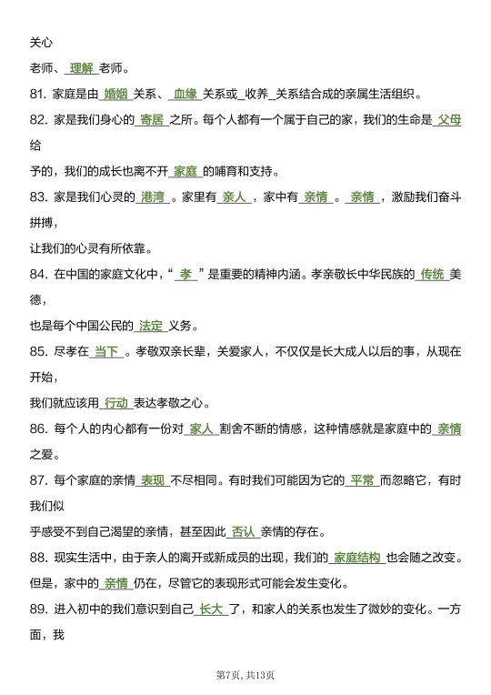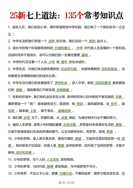 家长收藏孩子受益 七年级 必考考点 初中道法 初中道德与法治 高频考点 核心考点 初一道法提高孩子学习成绩 学霸秘籍