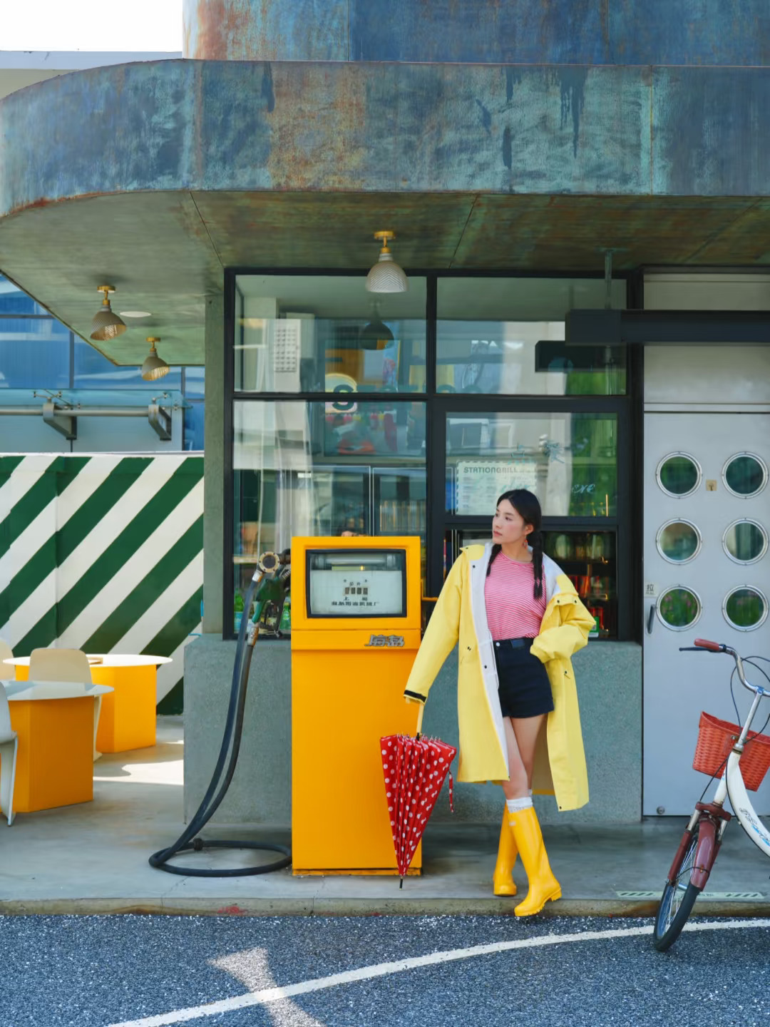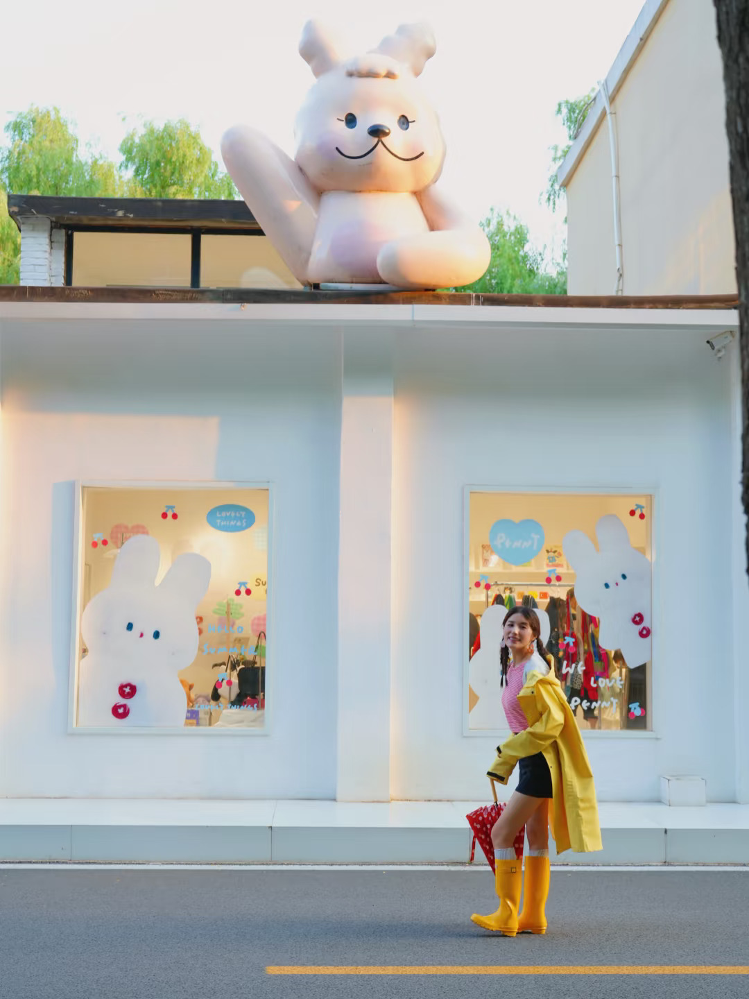 . hello 我是桃子! 挖掘北京好玩、好拍、好逛地方的文旅打工人! 北京从来不缺🈶意思的地方啊❗️ 今天继续给周末出门犯愁的宝子指个路🗺️ 超多可爱多巴胺的小店、拍照也是超出片🤳 而且宠物友好,随时都可偶遇🐶毛孩子 整理了拍照路线,有需要的码住❗️❗️ 🚶打卡路线 📍TATION GRILL:黄色邮箱📪和屋顶的🛵超可爱 📍Salome: 🈶三个椅子超有艺术氛围🎨 📍超级小狗计划:宠物友好咖啡店☕️可以带毛孩子进店🐶 📍啊喔咔豆:一直粉红色会飞的装置猪❗️ 📍王牌化身: NBA、动漫IP收藏级潮流人偶的店,NBA球迷别错过👏 📍秦玮鸿art:超多可爱小猪装置🐷 📍BLUEDOT:门口多巴胺色的香蕉🍌橙子🍊装置可以拍,一直向前广场上还有超火的拉布布🧸 📍lovelythings:🔆整个白色的建筑,门头有个白色的大兔子,店里面有超多可爱的小手办🐰 📍笑脸咖啡店:站在人行道上取笑脸为背景,好治愈 💙穿搭LIST 🧥JOYCORN全能风雨衣 👢JOYCORN骑士雨靴 出门时刚好赶上下雨🌧️正好我的JOYCORN雨衣和雨靴排上大用处,今天北京的夏天真的太需要JOYCORN🔆,上班穿被同事疯狂🔗,既使用又是潮流穿搭单品👏 🫟朗园station西南门进 📍朝阳区半截塔路53号 🚇 地铁:10号线【三元桥站】打车10分钟 🚗自驾:  🅿️停车场6r/h ⏰拍摄时间;下午2:00-5:00 📷拍摄设备:sony