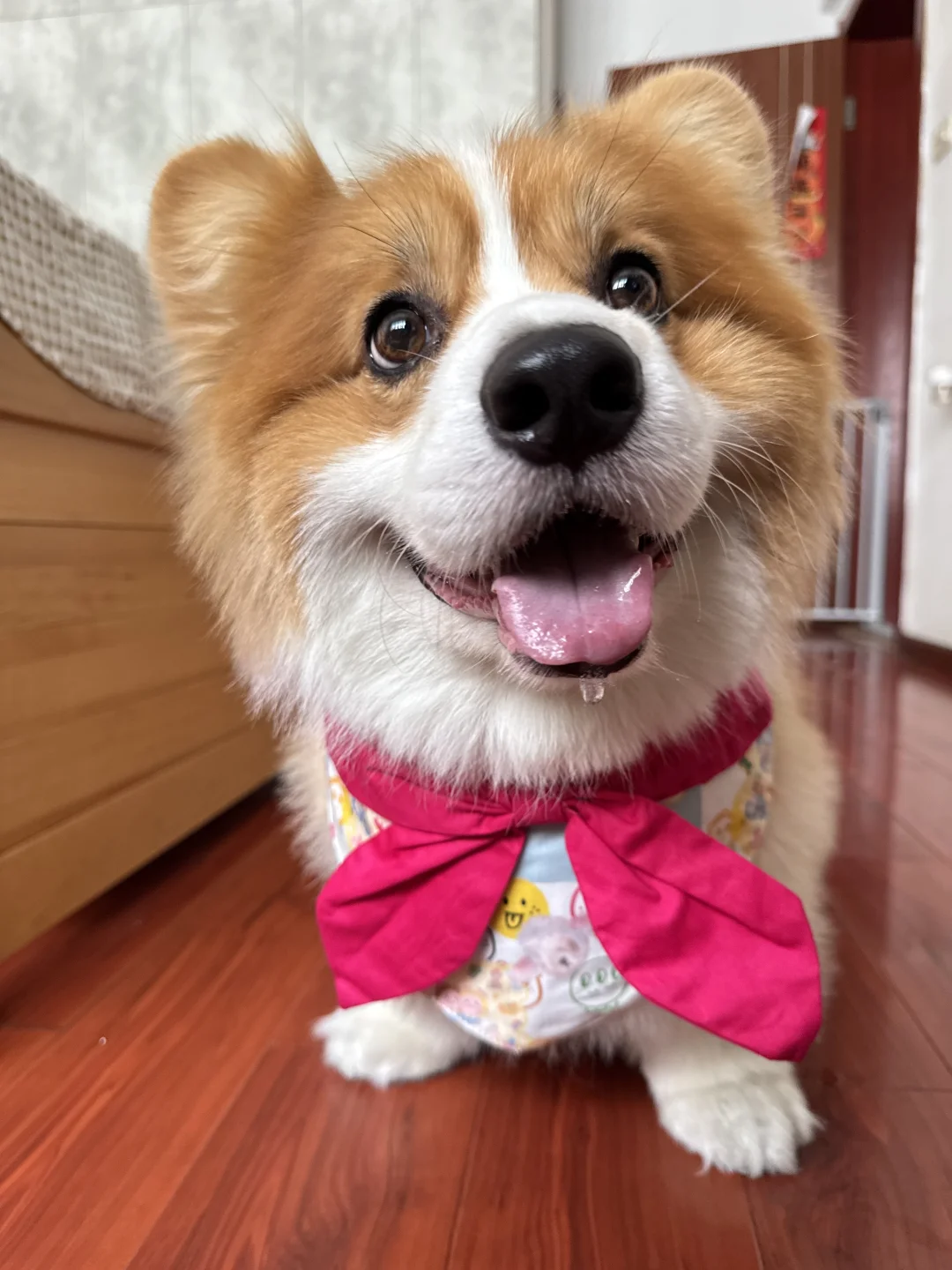 长毛柯基 小狗 我家宠物好可爱 精神状态岌岌可危