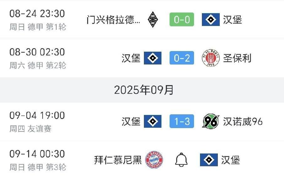 北大王汉堡队估计后悔死了,早知道就不升级德甲了,来德甲就是被虐菜的对象,前三轮开局已经两负一平,第四轮还是对阵老冤家拜仁慕尼黑,汉堡队全队已经死的心都有了,三连败已经成定局了。 9:2、8:0、6:0,汉堡队一次次惨案都是拜仁慕尼黑制造的,难怪汉堡队老是刹车,就是不想到德甲被拜仁虐菜。9月14日,汉堡对阵拜仁慕尼黑,大概率还是要惨败收场。 德甲不好混!按照这个趋势发展下去,估计汉堡队本赛季联赛到半程,汉堡队就早早确定降级,灰溜溜跑回德乙当老大去了。 那么问题来了,您认为对阵汉堡队,拜仁慕尼黑能够进几个球?我估计是最低消费,5个球起步。#德甲# #足球#