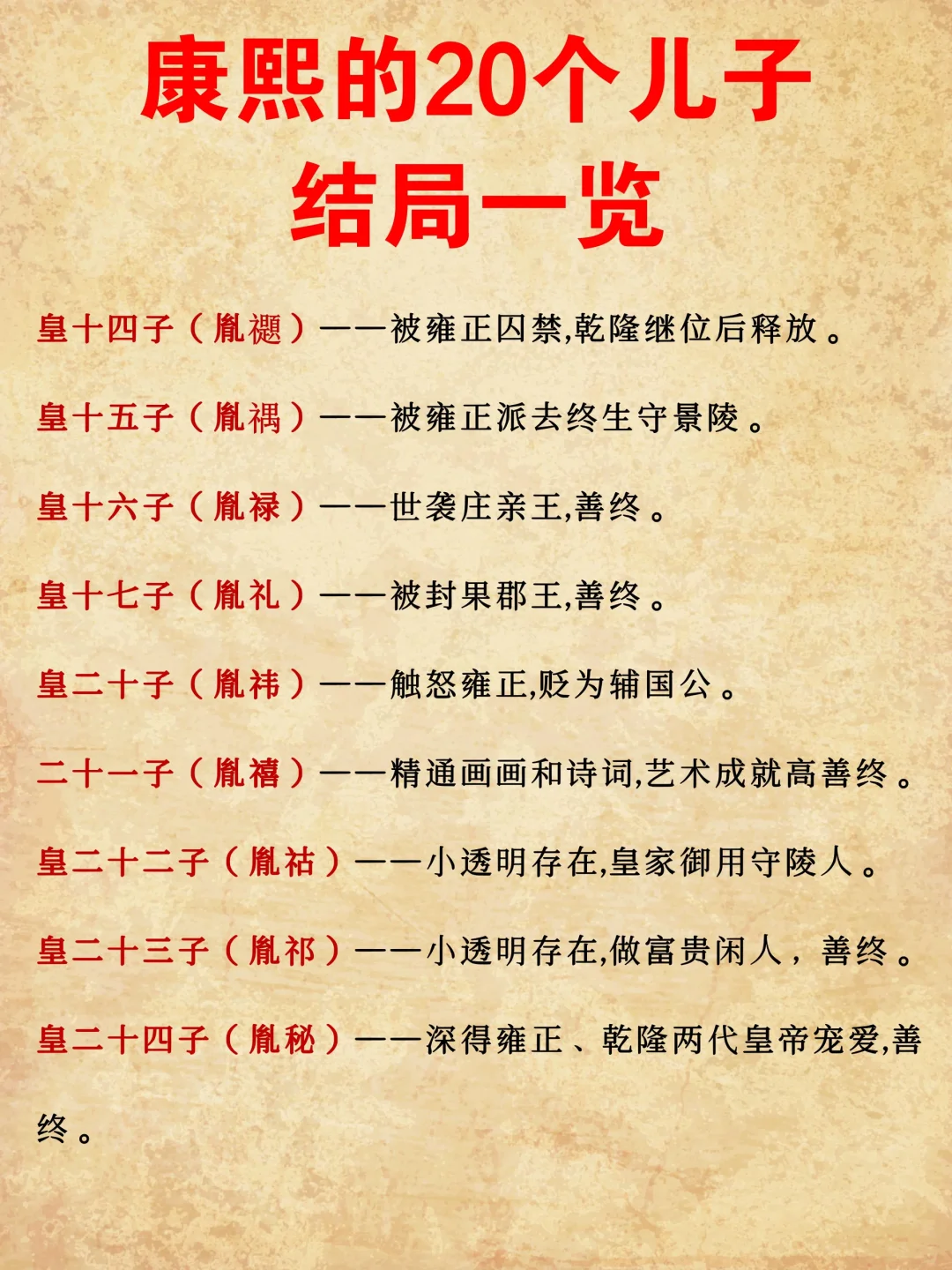 康熙的20个儿子结局一览!大多结局悲惨!