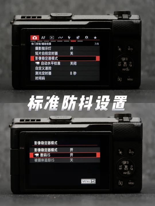 ✅动态IS增强选择打开,数码IS也打开。增强选项会裁切画面,固定机位拍摄时可关掉,画面更广。