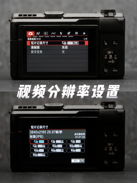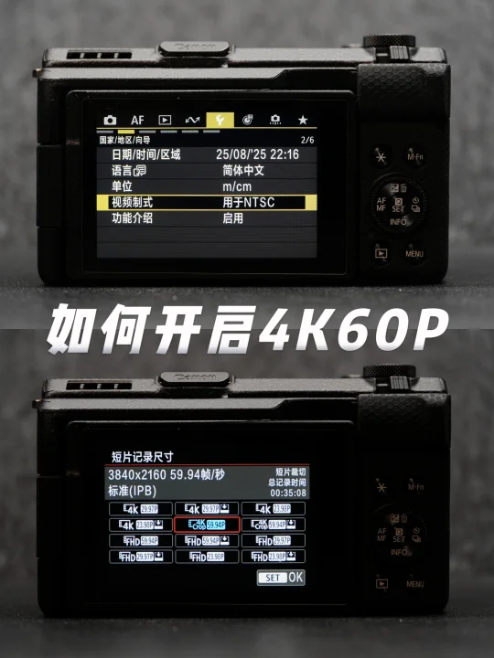 ✅分辨率:优先选择 4K/30p 兼容性最好,画质也比较好,如果要解锁4K60帧,要打开NTSC模式