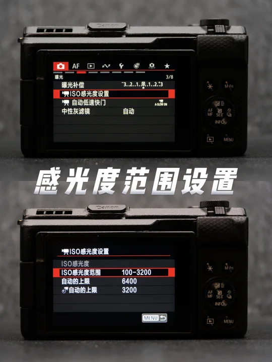 ✅ISO:光线好时尽量用 ISO100-400,设置Iso范围100-3200,以免iso过高导致画面模糊