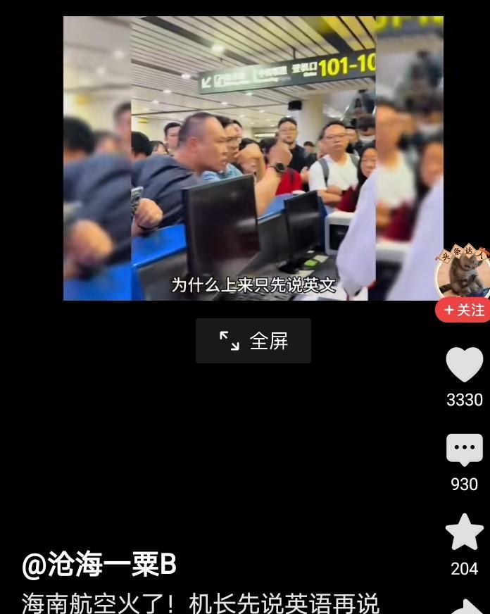 你敢相信吗,我们国内的航空公司,机长播报先说英语再说汉语? 这事就是近两天发生在海南航空。海南航空机长先英语后汉语的操作惹怒乘客,乘客愤怒的表示要进行严重的投诉。 理解乘客的不满,也支持乘客的投诉。作为中国的航空公司,在中国的航班航班上,优先汉语播报这是对母语的尊重,也是对中国乘客的尊重。