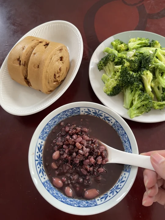 嗨👋互联网闺蜜们 我是热爱食养文化的樂妈👩 自学《黄帝内经》 挑战和宝宝一起中医食养好月卑胃100天打卡✅ 🥣清炒西兰花➕五谷粥(养气血)➕红糖馒头 今日状态✅ 🟢胃:正常 🟡脾:虚 运动:散步➕瑜伽🧘♀️ 姨妈期结束总感觉人乏力,气血虚,最近入手一款很不错的五红粥,配比很好,比自己搭配口感细腻,很适合喜欢调理气血朋友[害羞R]