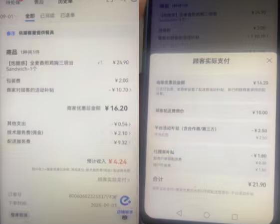 外卖大战打到现在,活得最惨的人出现了,不是京东,不是美团,而是撑起饿了么平台繁荣的商家和骑手。 前段时间,为了跟京东外卖对打,某宝闪购宣布拿出500亿补贴参与外卖大战,表面上看,是为了争用户、提份额。可几个月过去,消费者羊毛薅得开心,平台份额也涨到28%,唯独商家和骑手,被压得快喘不过气。 有骑手晒出自己25天的血汗跑单收入,居然才25块。而原因很简单,因为饿了么的单价一降再降,从4块降到了2打头,甚至还出现了0元订单。除了单价低,平台的各种罚款也越来越多,这才出现了骑手跑一天才赚一点钱的情况。 更离谱的是,后台权限都不是商家说了算。不少老板反映,平台BD能擅自登录商家后台,强行把店铺拉进补贴活动,还能随意动用商家资金。而一旦不从,平台就直接限流,让商家单量断崖式下跌,甚至是封掉商家线上店铺。 要知道,餐饮商户不是囤货、走量的生意,而是每天靠几十单活着。一旦做一单亏一单,哪怕日单过百,也是在加速死亡。饿了么表面上拿了500亿打仗,实则全靠商家垫钱、骑手贴命。这一仗赢不赢先不说,至少底层人先赔光了。 所以,哪怕上半年某宝闪购的财务报表好看,但却是商家和骑手在为便宜外卖买单。商家的亏损、骑手的怒火、行业的透支,终将一一反噬回来。所谓百亿补贴已然成了百亿“代价”。