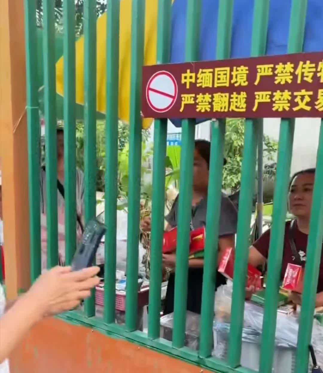 中缅交界,对面人手里拿的是什么?我没看错吧! 云南一地与缅甸交界处,缕空的栏杆国界,墙上的牌子对面是完全没看见啊,感觉都搞成商业街了! 咱就是说中国人的钱真的这么好赚吗?大家来这里是为了买这个?有啥不一样吗?