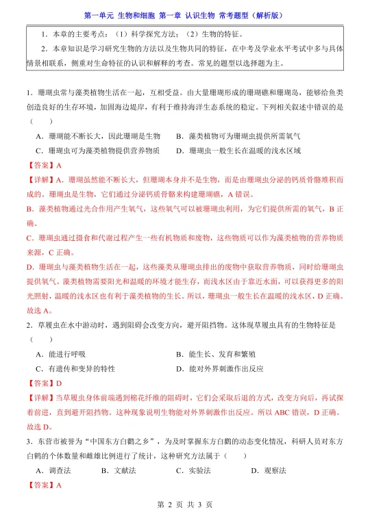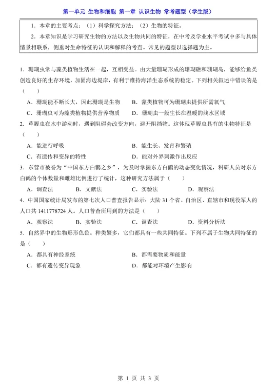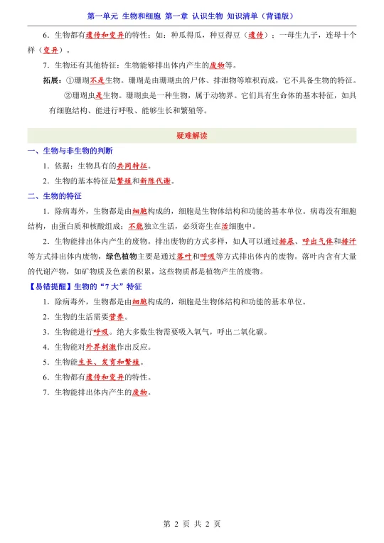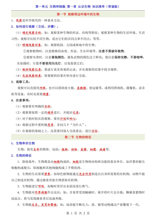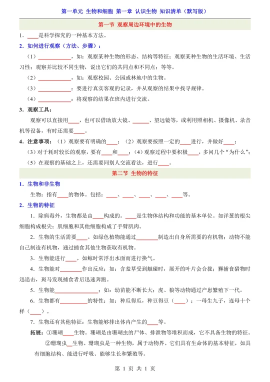 25新七上生物第一章知识清单➕默写➕常考题!