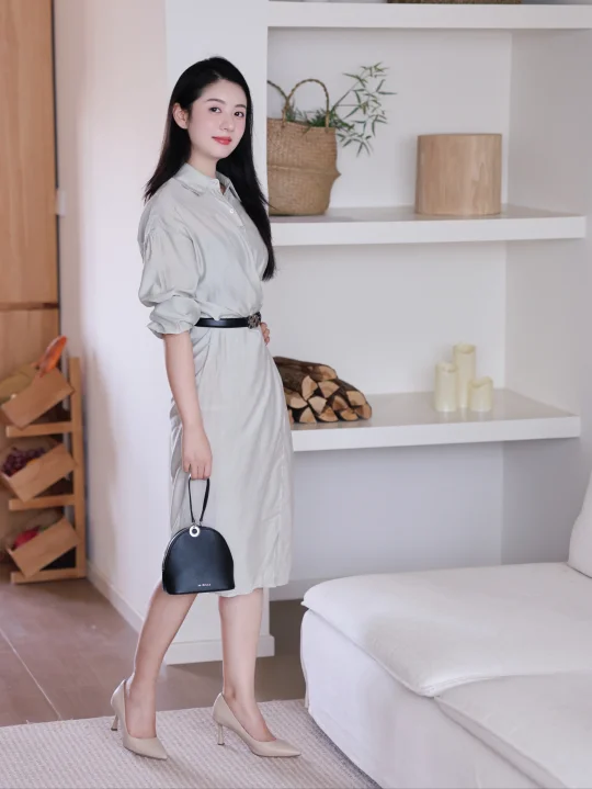 无论是舒适亲肤的衬衫裙,还是裸色有支撑感的小高跟~