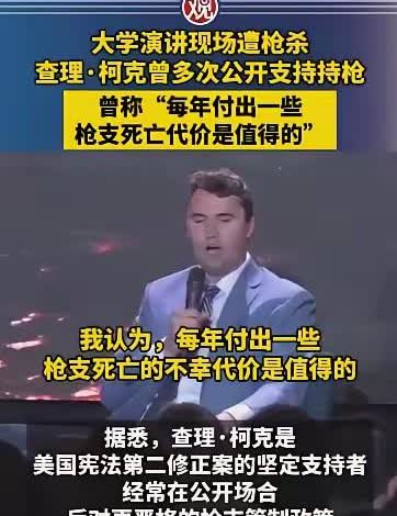 几百米外一枪致命!暗杀柯克枪手非常专业,撤退动作一气呵成。话说,他自己说过每年被枪杀死一些人是值得的[捂脸]说的话正中脖子。柯克认为,每年因枪伤亡是值得的,维护了持枪自由,他自己成了维护自己的值得者。他是一位彻彻底底践行知行合一理念的人,凭借自身的实际行动,向世人清晰展示了“言必行,行必果”的真正内涵。他用自己的一生作为有力证据,表明付出代价是值得的。