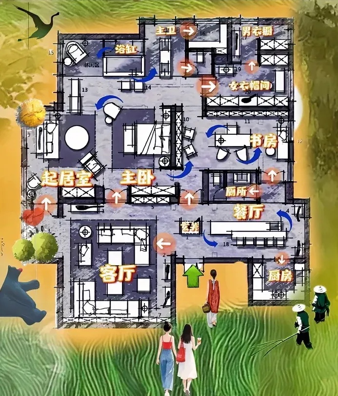 小玄关,真孤独。大卧室,私区的睡觉大IP,120㎡洞开四道门,分散式洄游,超越自个儿的梦想,最有生命力的动线!