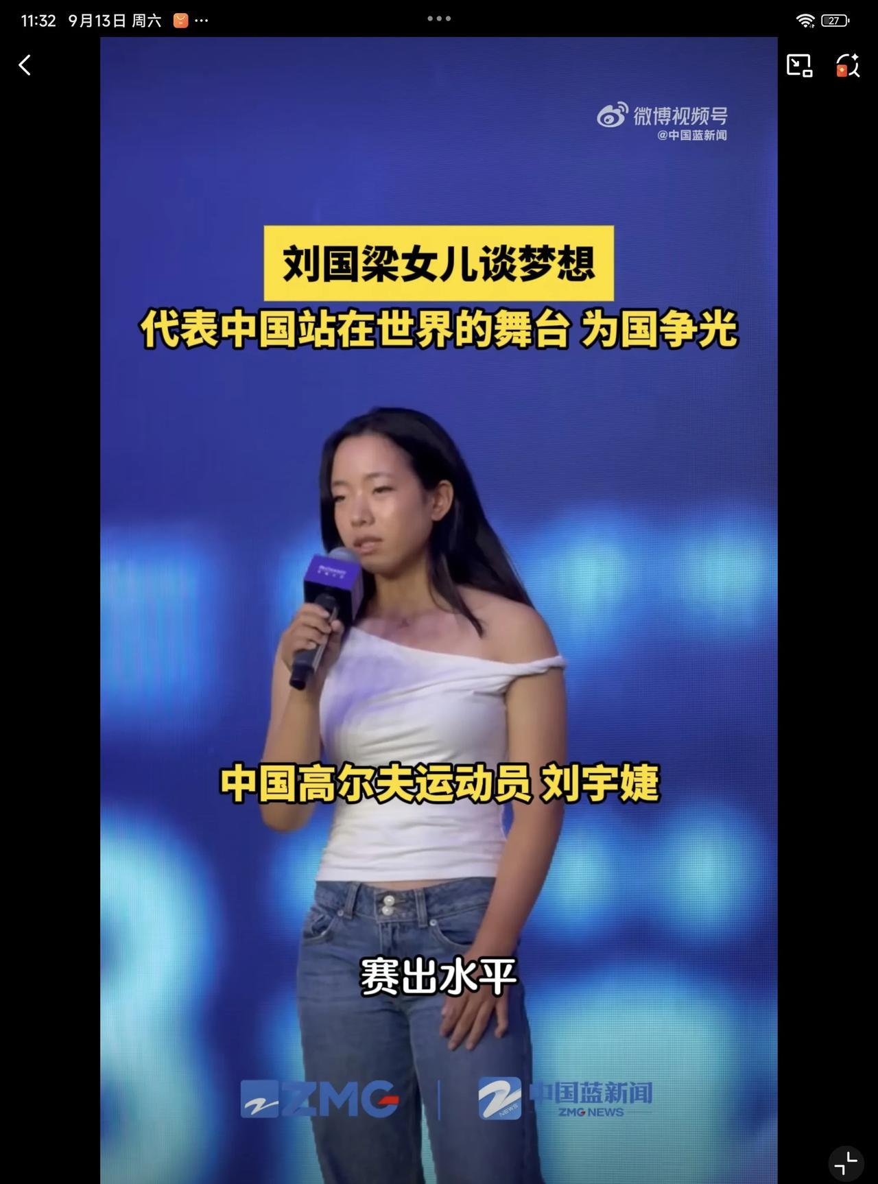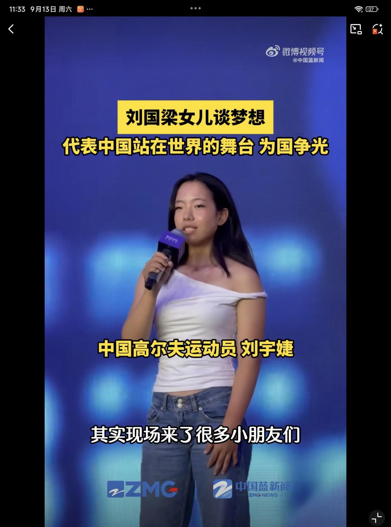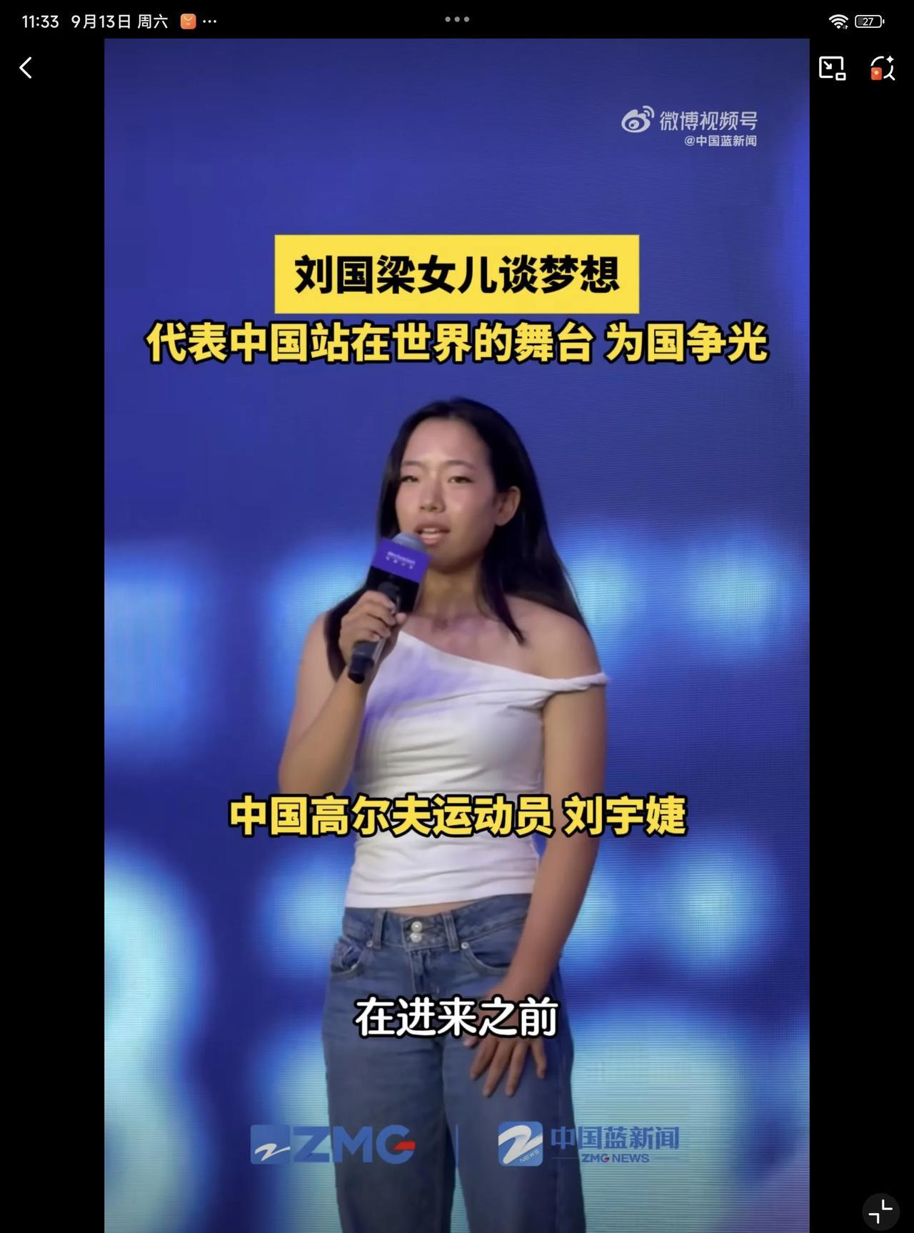 09月12日,刘国梁15岁的女儿刘宇婕,穿着性感还露出半个香肩在台上发表时,像极