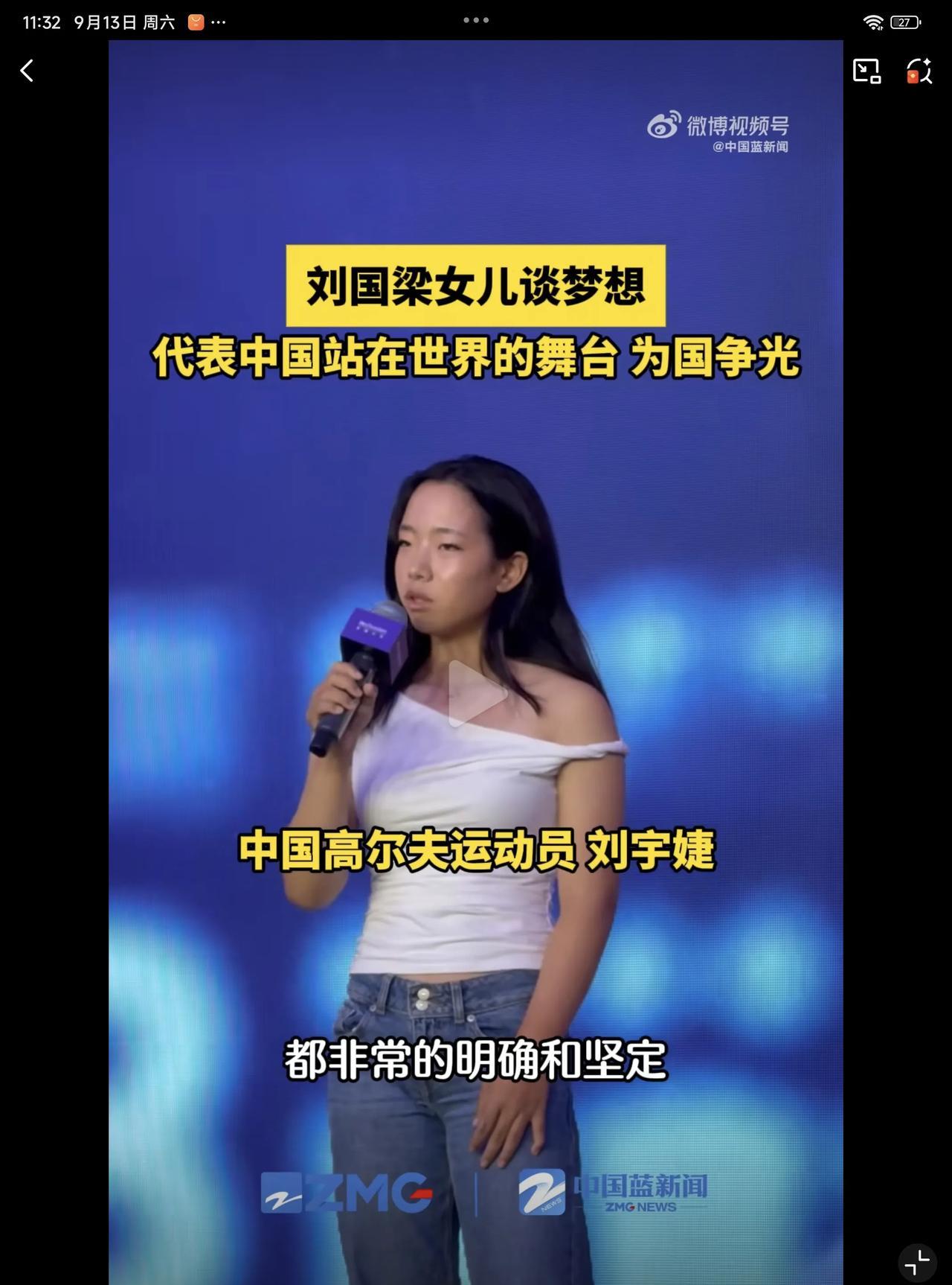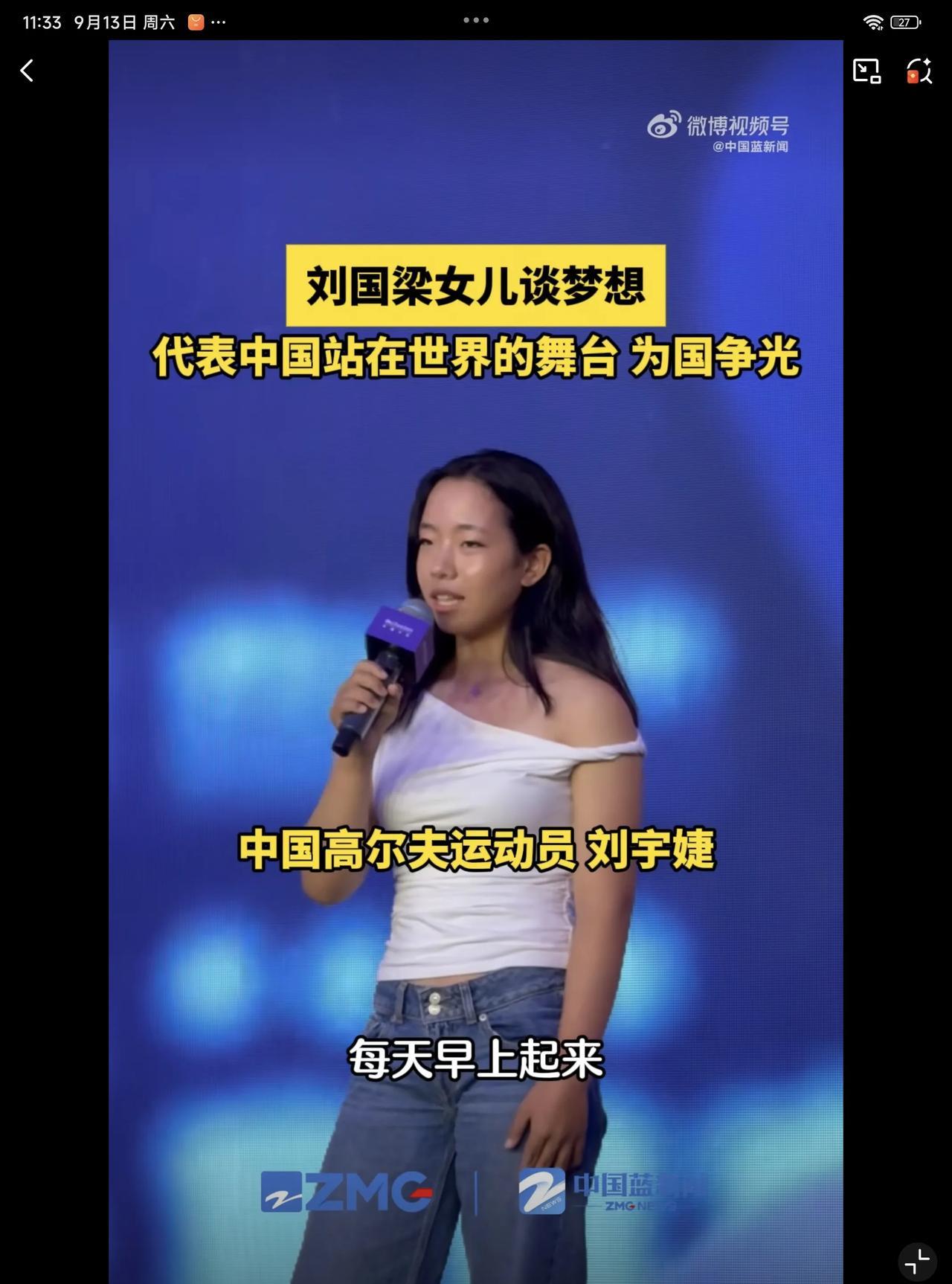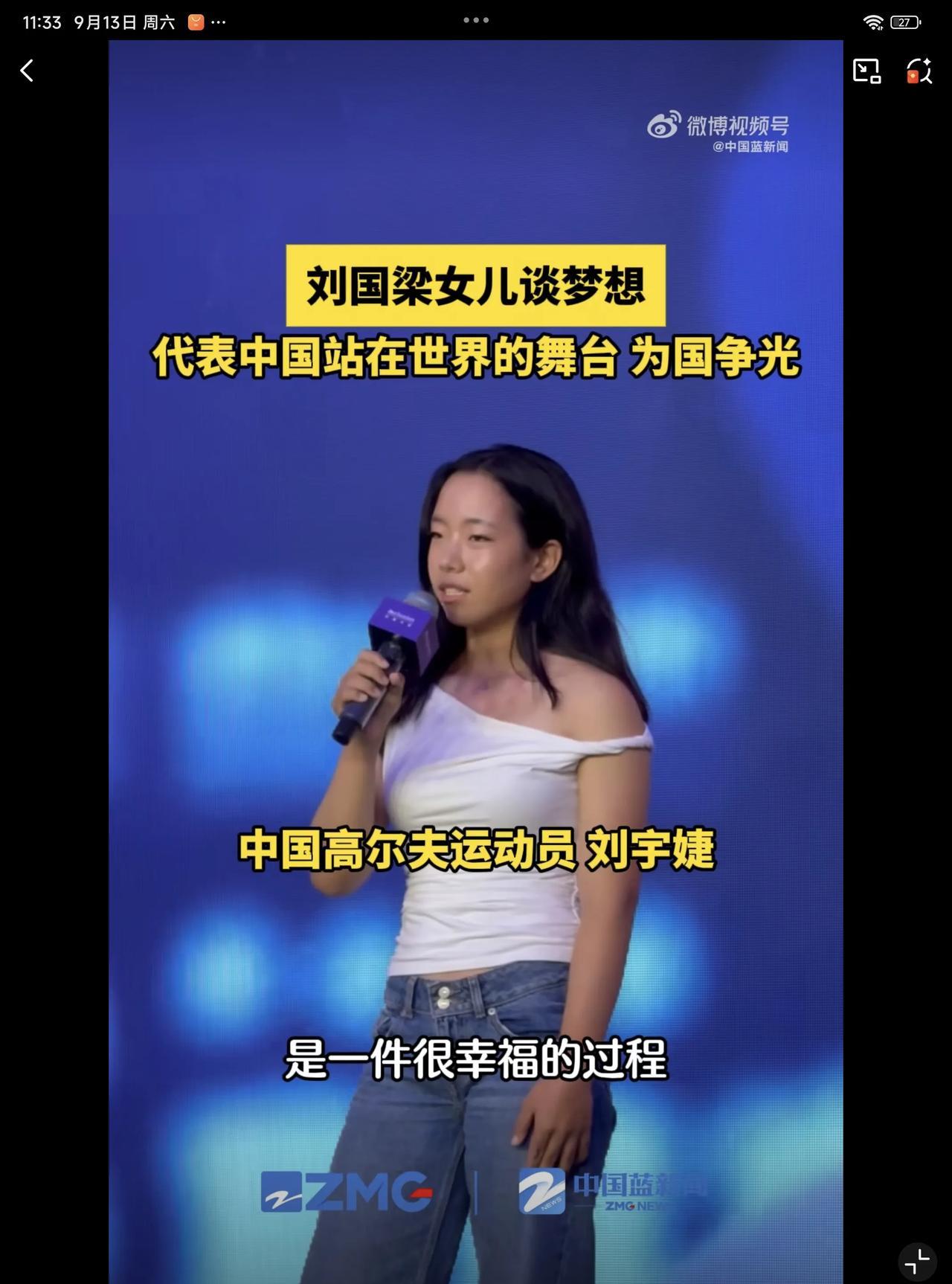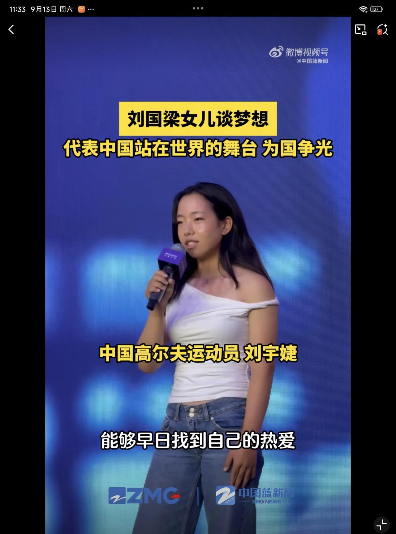 09月12日,刘国梁15岁的女儿刘宇婕,穿着性感还露出半个香肩在台上发表时,像极