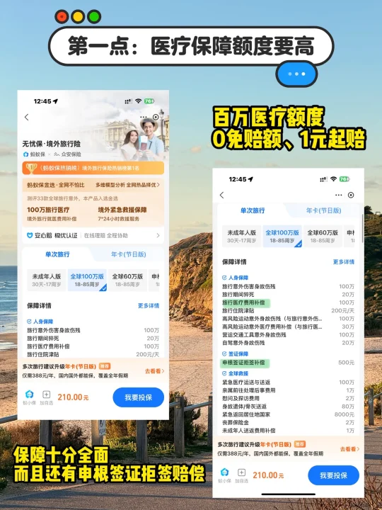✅我用的「无忧保•境外旅行险」有 百万医疗保额,0免赔额,1元起赔,这种就医压力基本不用担心。