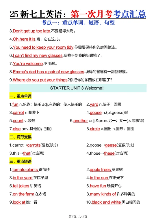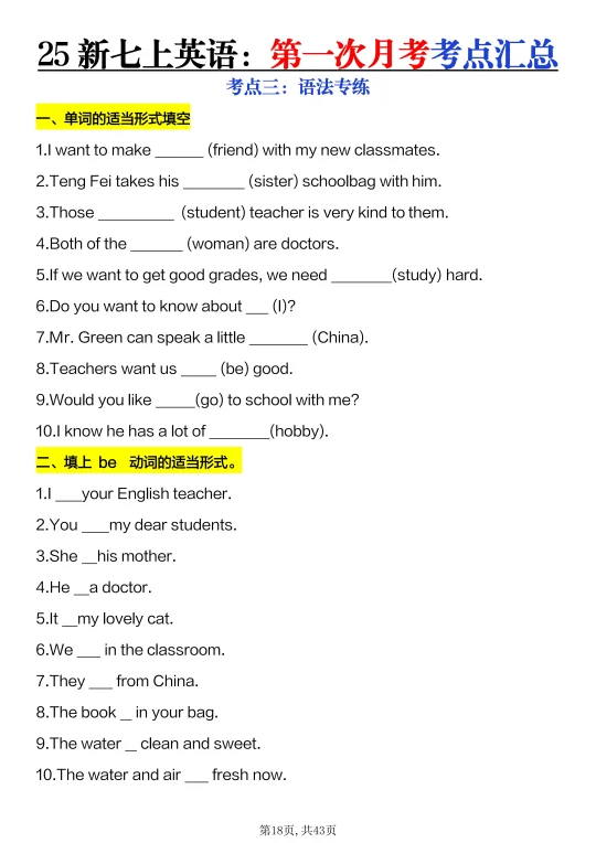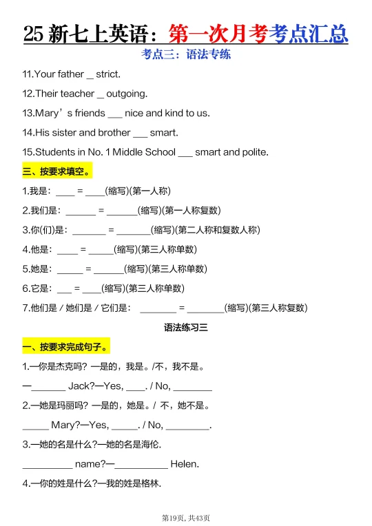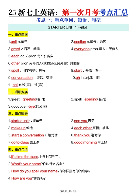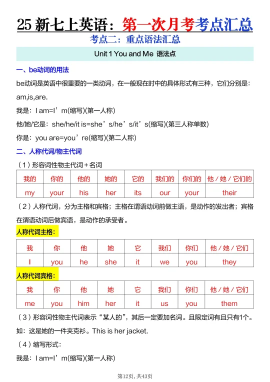 第一次月考 必考考点 知识点总结 初一英语 七年级上册英语 辣妈育儿经 提高孩子学习成绩 家长收藏孩子受益 陪读妈妈 父母与孩子