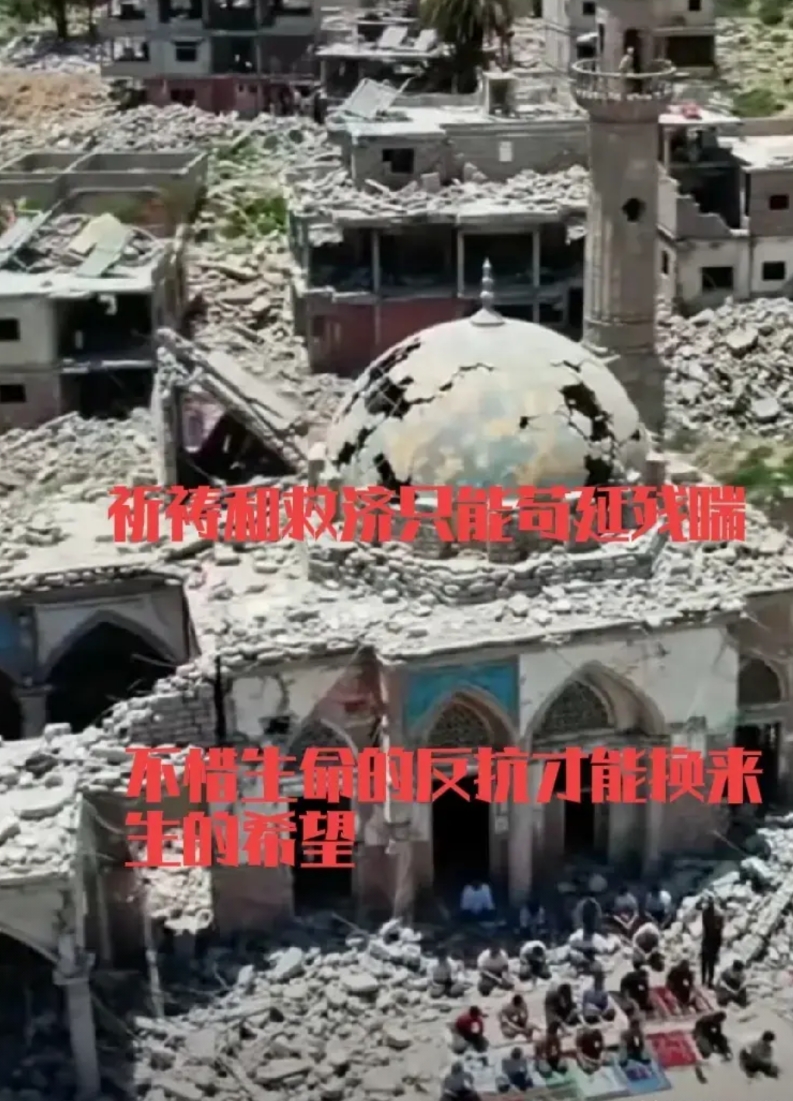 加沙人应该觉醒,中东人应该觉醒,如果祈祷有用,加沙就不会成为废墟,就不会有那么多加沙人失去生命。 自己的家园得靠自己建设,自己的生命得靠自己保护,在生死存亡之际,抛弃一切幻想,只有不惜生命的抵抗,才能换来生的希望,才能换来活下去的机会。 穷尽一切办法,消灭侵略者,世界永远支持正义。