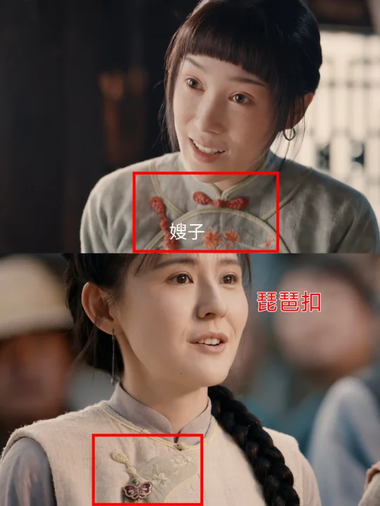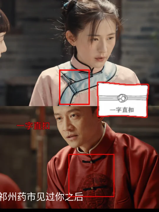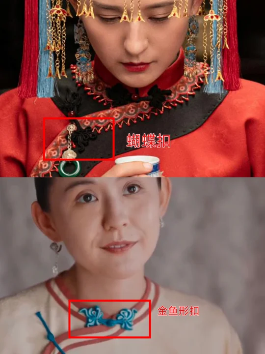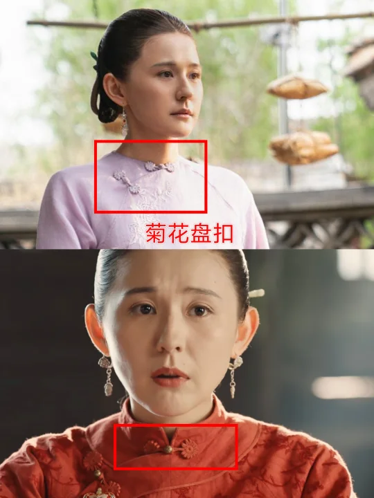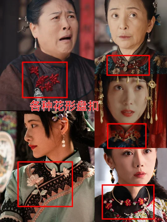 ✅剧中盘扣的使用很是符合时代背景,花式很是多样,有菊花盘扣、梅花扣、金鱼扣、盘结成文字的吉字扣、寿字扣、囍字扣等。