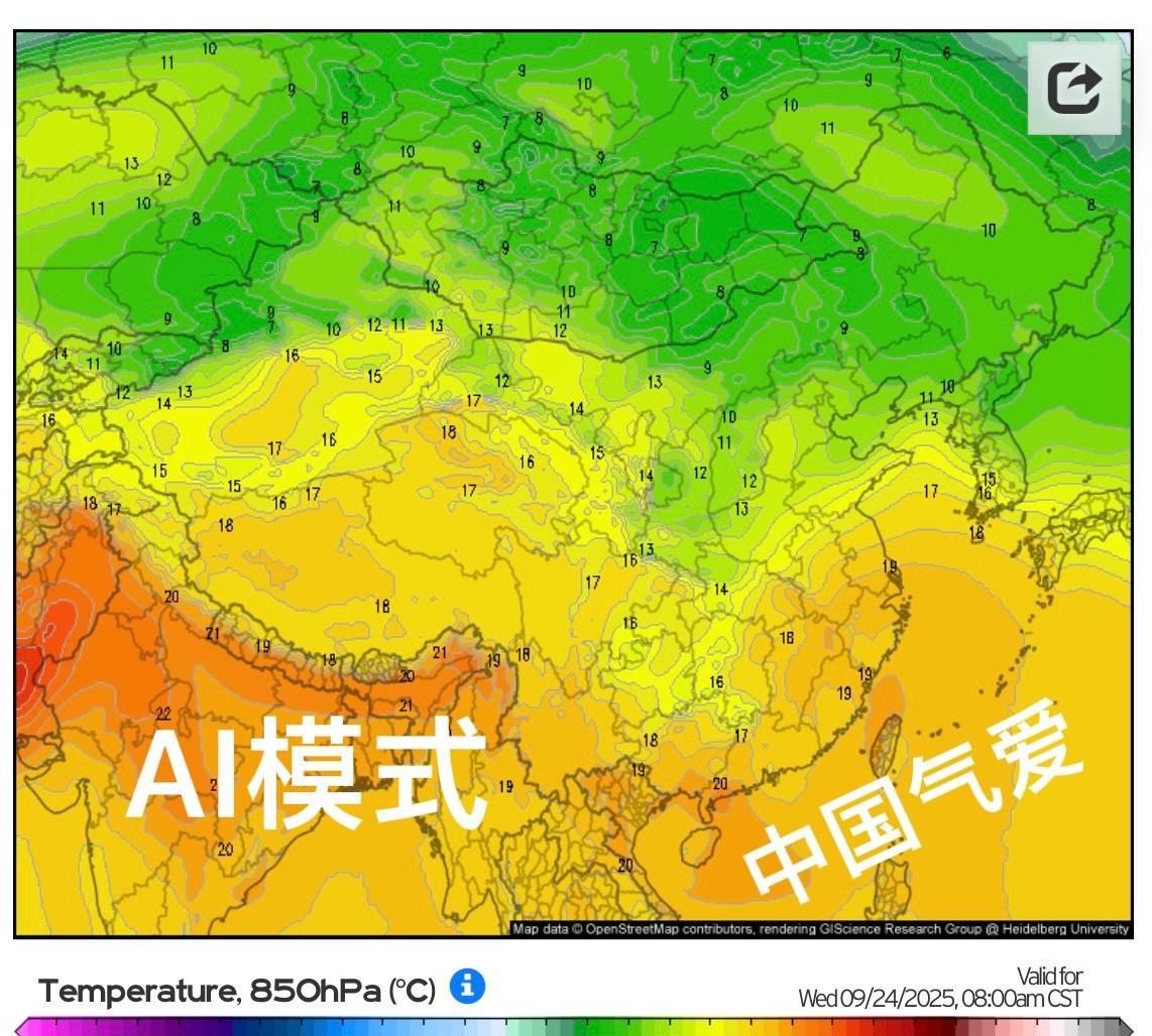 【远期降温信号】EC和AI新报调出9下旬冷空气大范围南下趋势。从形势来看,下旬中后期,南方副高强度逐渐被冷空气弱化,暖色调向海上撤离。另外850百帕显示江南气温明显转凉信号。不过对于远期预报来讲,短期内观赏性高,参考看看先。