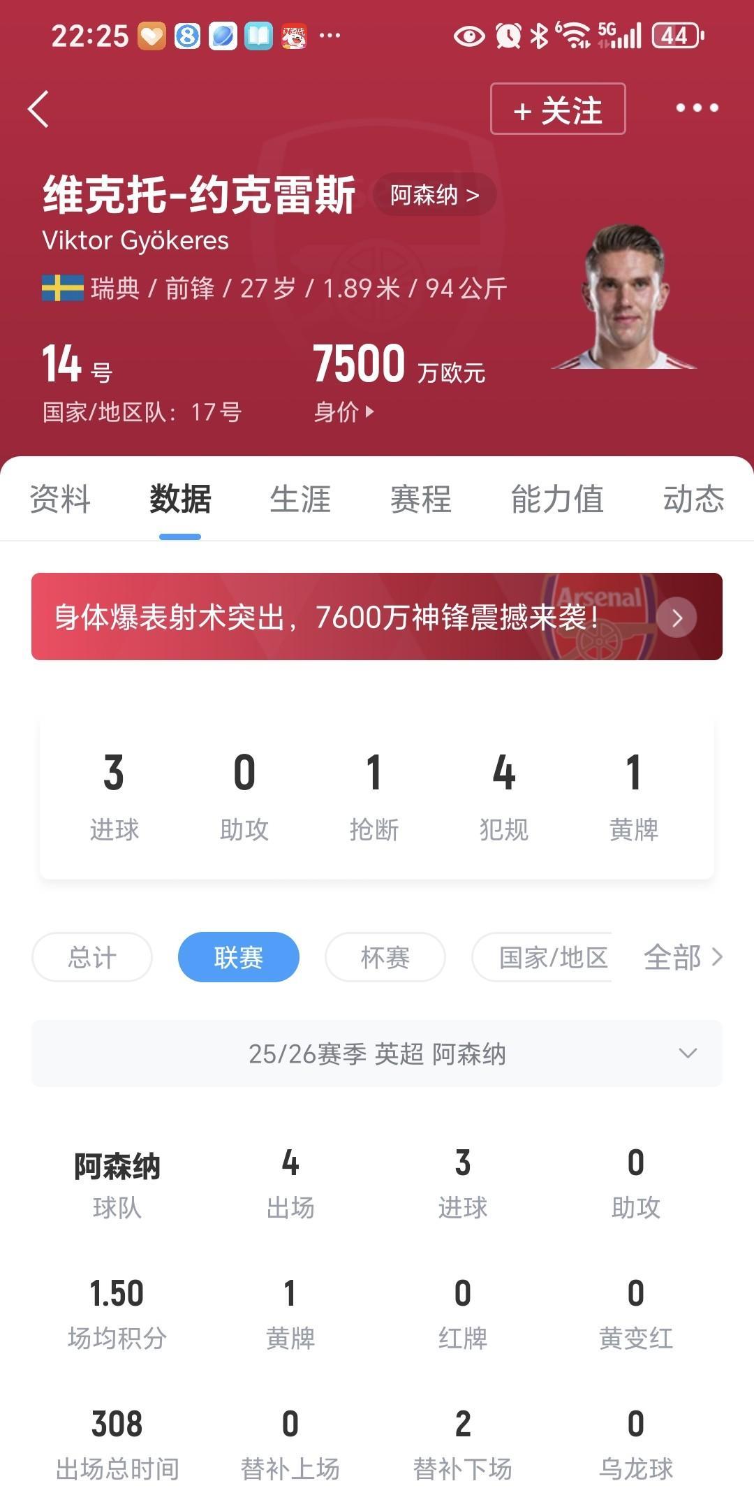 啪啪打脸!都说身价7500万欧的约克雷斯会成为阿森纳高价买的水货,结果约克雷斯4