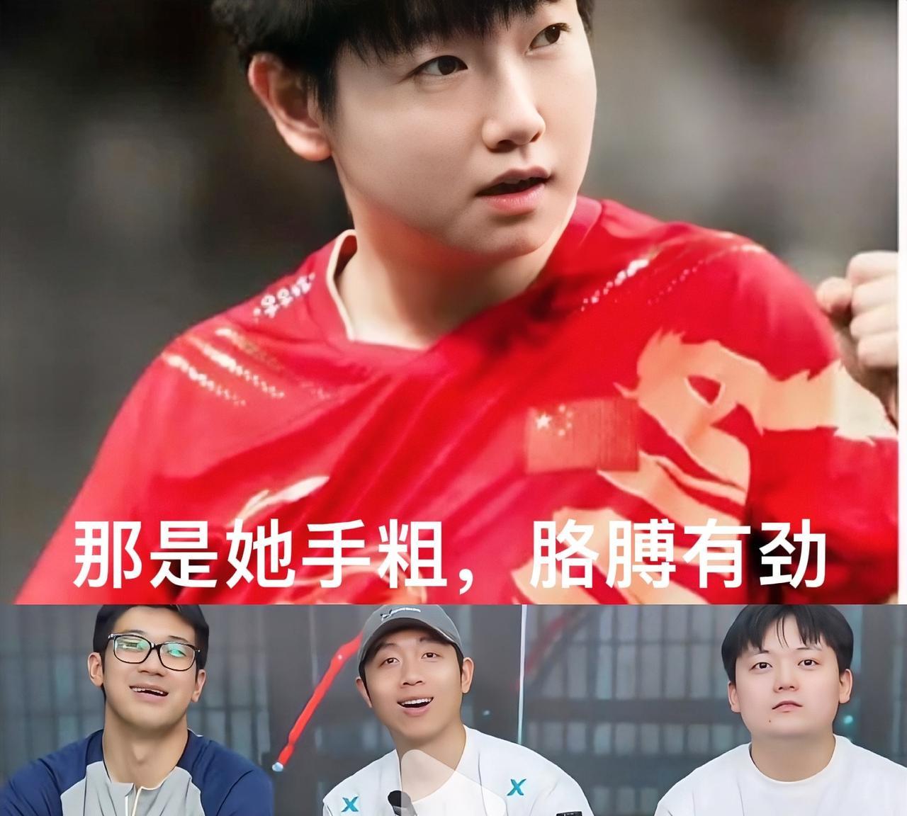 笑不活了 许昕还是太全面了 有人在直播间说:孙颖莎胳膊肿了 许昕回答:那是她手粗