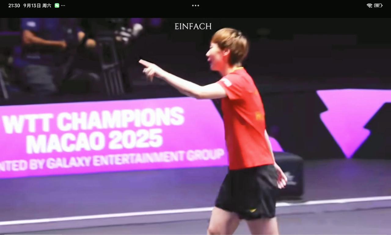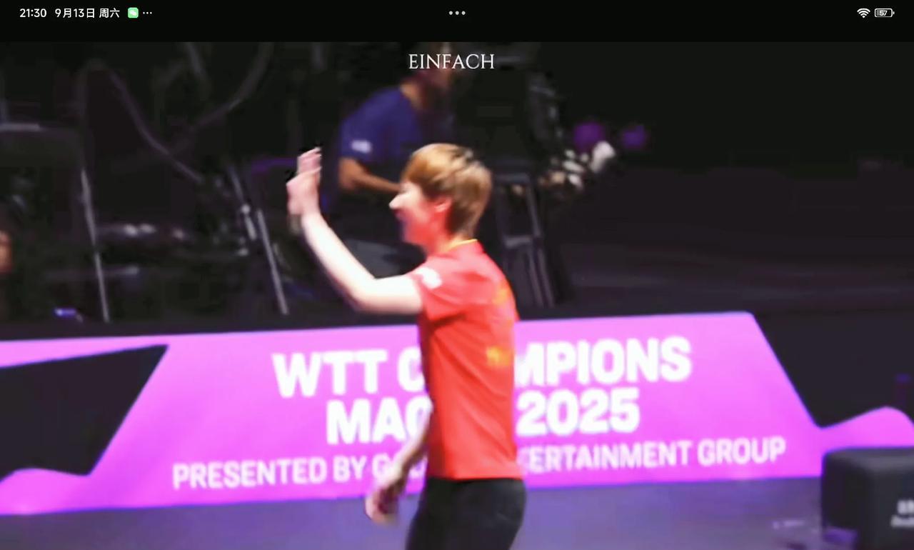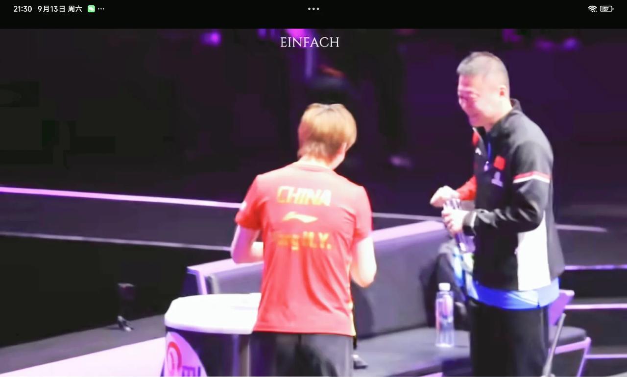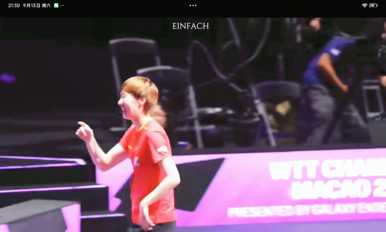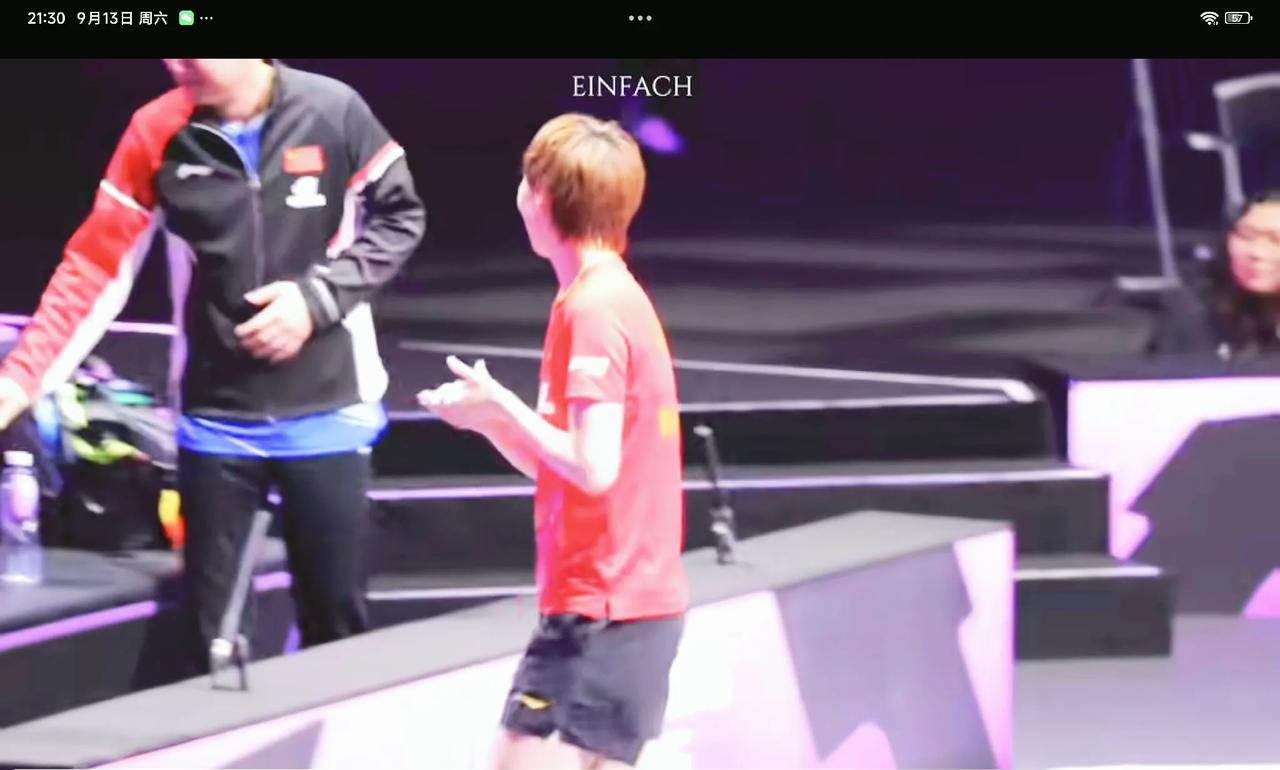 09月13日,王曼昱赛后,跟观众席上的徐奕,陈熠,体能教练孙奇,还有王艺迪等姐妹助威团打招呼,看着王曼昱笑得一朵花似的,真是又甜又迷人,有这般姐妹的陪伴,就是王曼昱最大的鼓舞和动力,谢谢你们一直陪伴在王曼昱身旁 王曼昱4:0战胜朱雨玲 后,她看向观众席后,看到一群可爱又调皮的人正在身王曼昱挥手,王曼昱连忙指向她们,也做了挥手的动作回应这帮好姐妹,王曼昱是一位腼腆又矜持人,只有看见自己的好姐妹,才会笑得如此外放和开朗,打完招呼后,还跟马琳讲: 快看,看台上的她们太调皮了 马琳也是被逗笑了,看着马琳笑得如此灿烂,此时,男队教练王皓羡慕吗?感觉还是女儿好带,马琳就是好命,女单四强全是中国队,马琳可以提前下班了