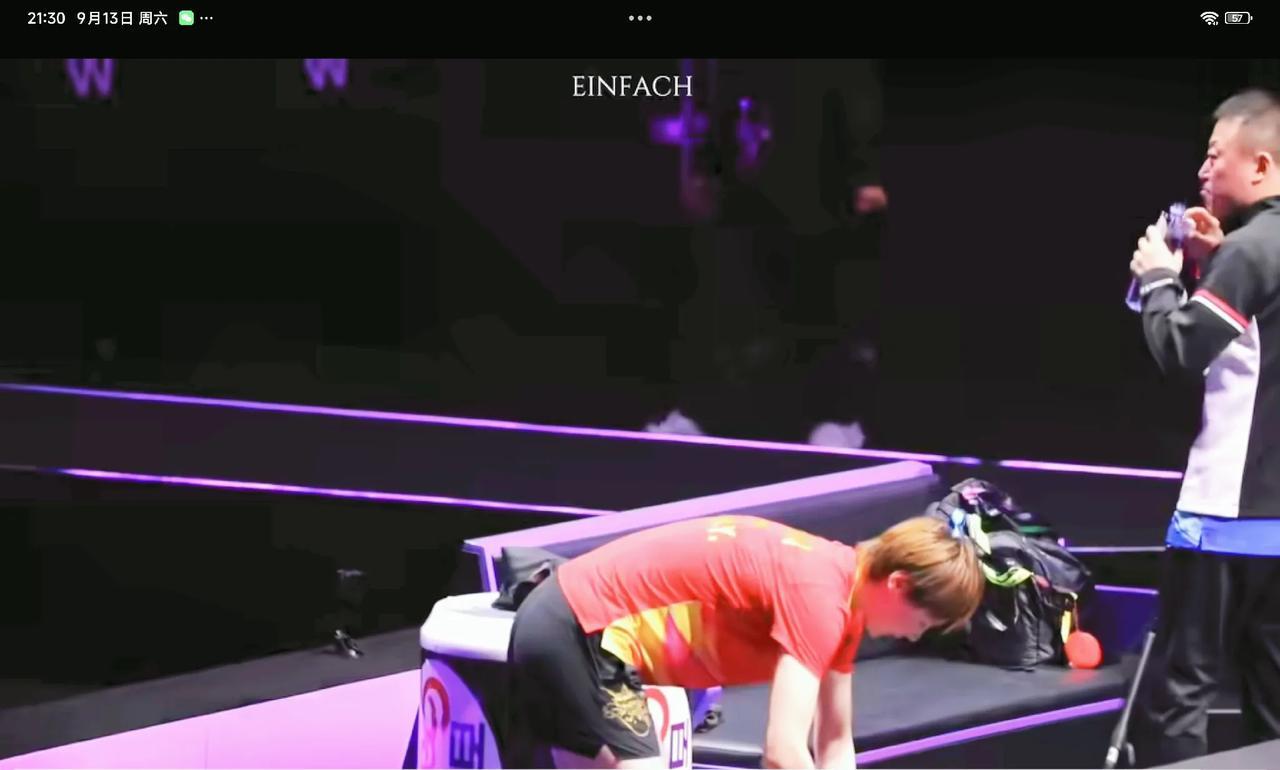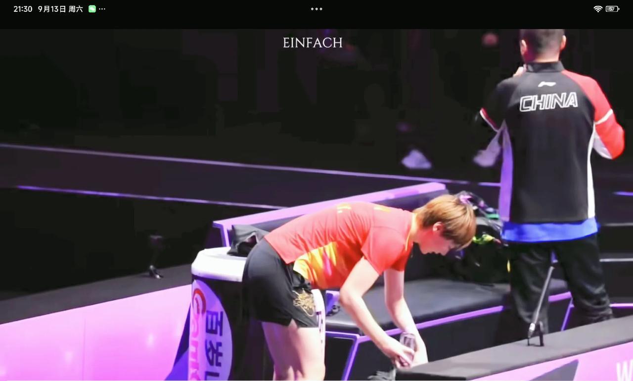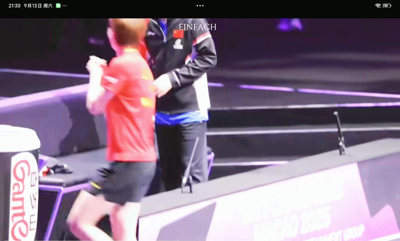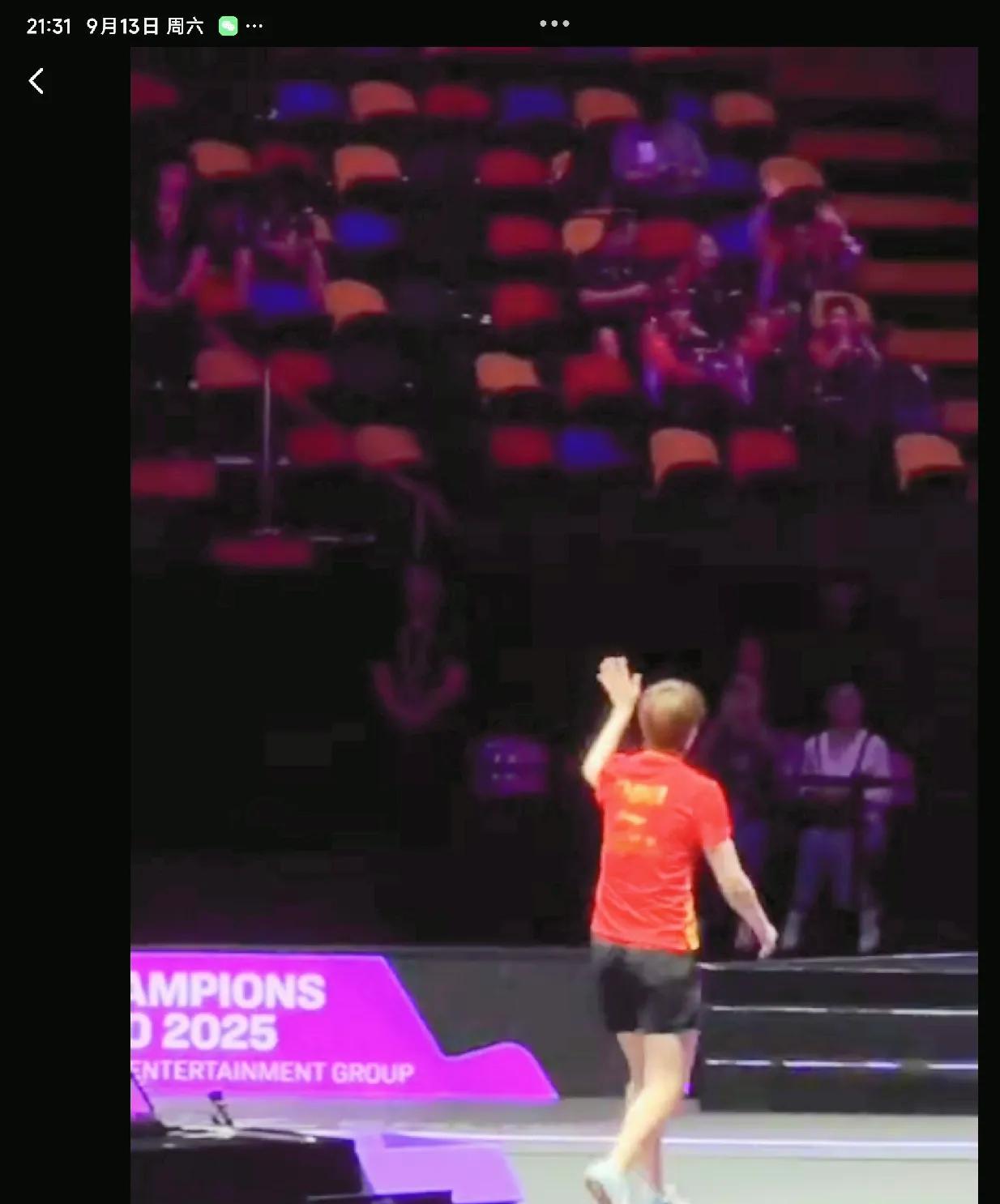 09月13日,王曼昱赛后,跟观众席上的徐奕,陈熠,体能教练孙奇,还有王艺迪等姐妹助威团打招呼,看着王曼昱笑得一朵花似的,真是又甜又迷人,有这般姐妹的陪伴,就是王曼昱最大的鼓舞和动力,谢谢你们一直陪伴在王曼昱身旁 王曼昱4:0战胜朱雨玲 后,她看向观众席后,看到一群可爱又调皮的人正在身王曼昱挥手,王曼昱连忙指向她们,也做了挥手的动作回应这帮好姐妹,王曼昱是一位腼腆又矜持人,只有看见自己的好姐妹,才会笑得如此外放和开朗,打完招呼后,还跟马琳讲: 快看,看台上的她们太调皮了 马琳也是被逗笑了,看着马琳笑得如此灿烂,此时,男队教练王皓羡慕吗?感觉还是女儿好带,马琳就是好命,女单四强全是中国队,马琳可以提前下班了