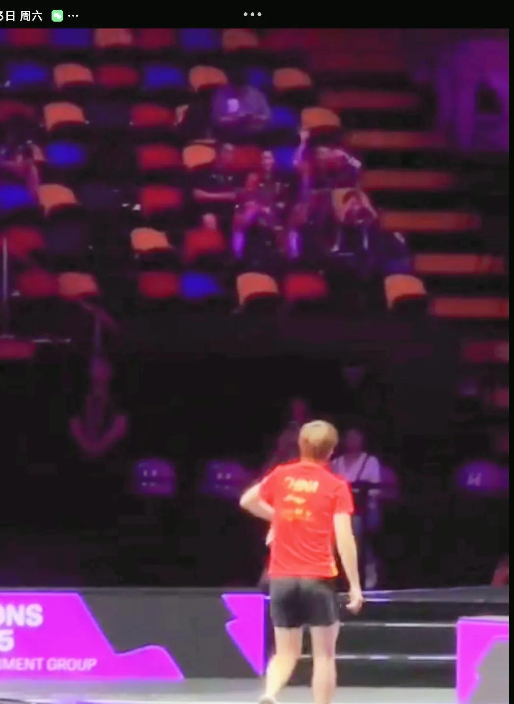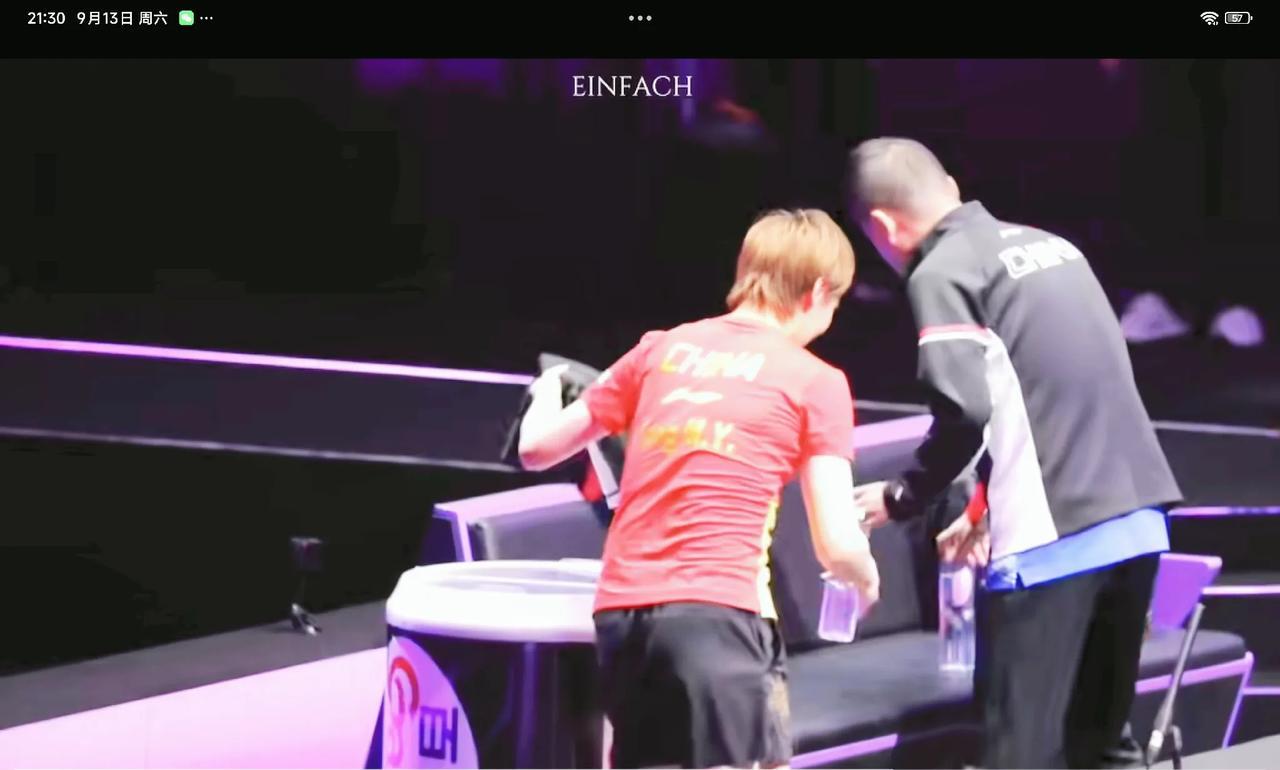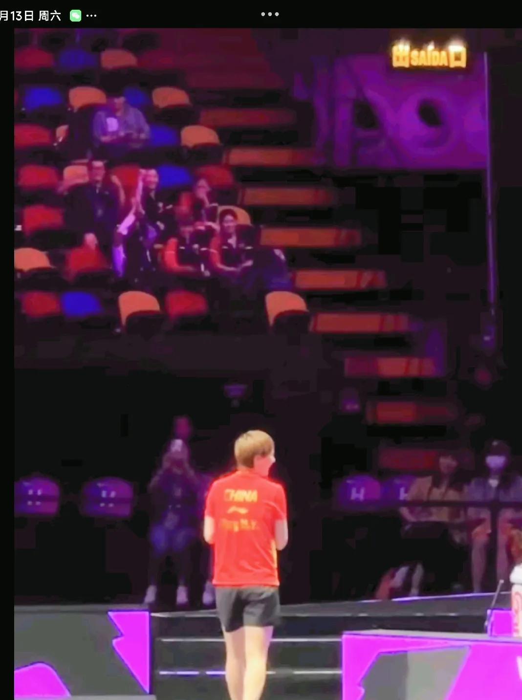 09月13日,王曼昱赛后,跟观众席上的徐奕,陈熠,体能教练孙奇,还有王艺迪等姐妹