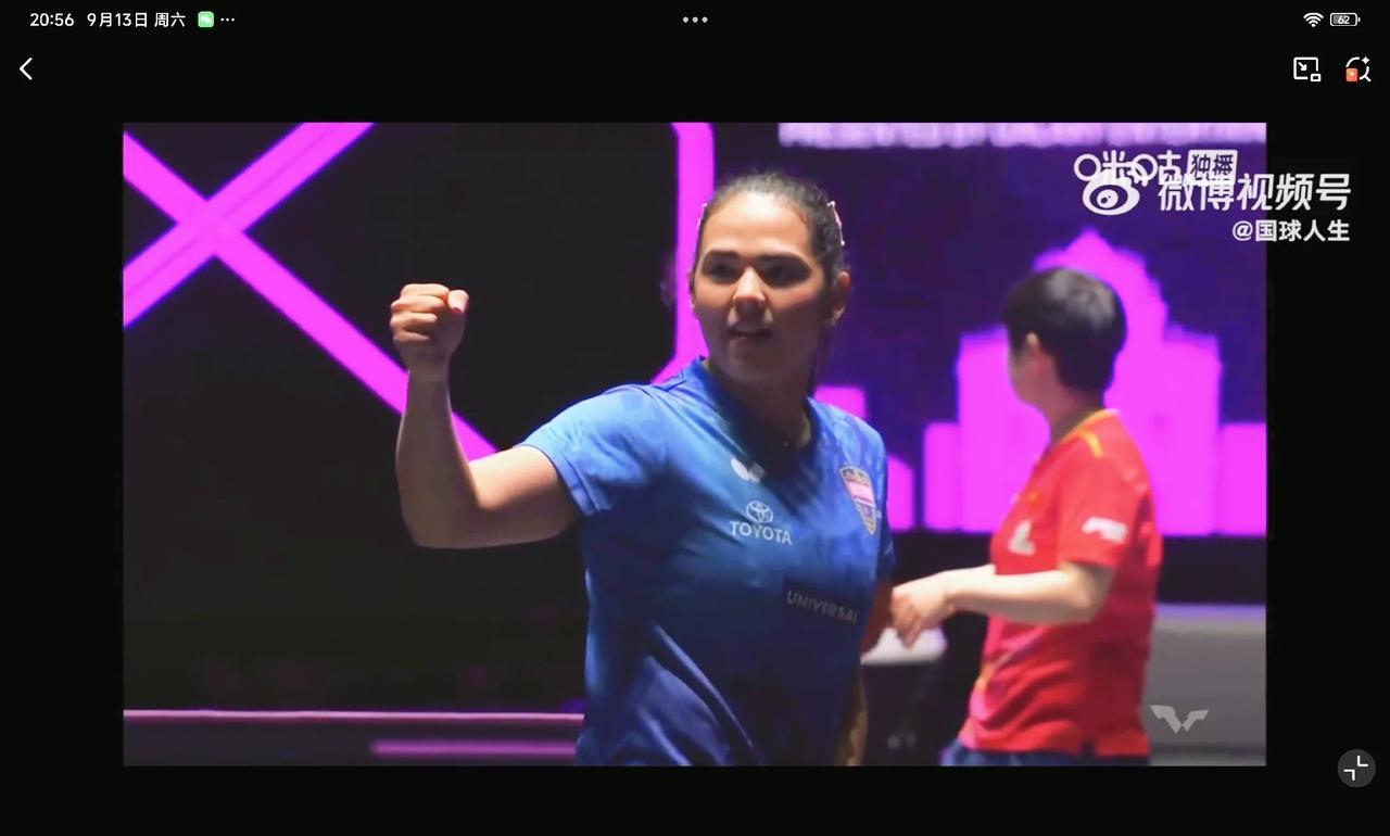 孙颖莎10:12不敌迪亚兹,赢下首局的迪亚兹也是相当兴奋,露出了开心又喜悦的笑容