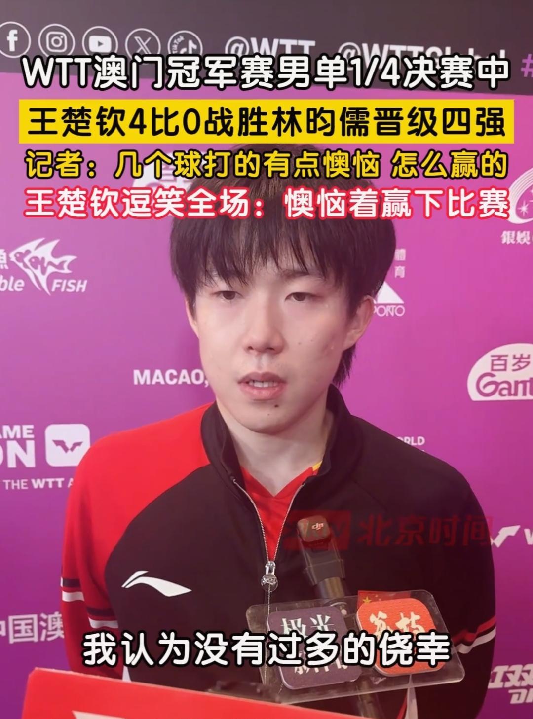 王楚钦的神回答出口, 记者都忍不住爆笑了! 记者: “几个球打的有点懊恼, 那是