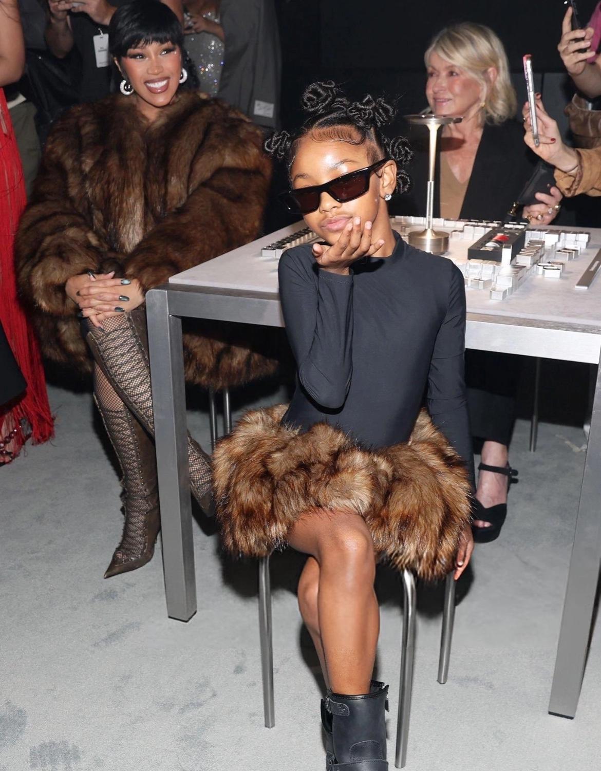 Cardi B亮相纽约时装周,女儿竟比妈妈有范儿 Cardi B携女儿Kulture共同亮相纽约时装周,出席Alexander Wang 2026春季大秀。 年仅6岁的Kulture镜头感十足,表现力超强,比妈妈还有范儿[呲牙] #Cardi B# #明星时尚穿搭#