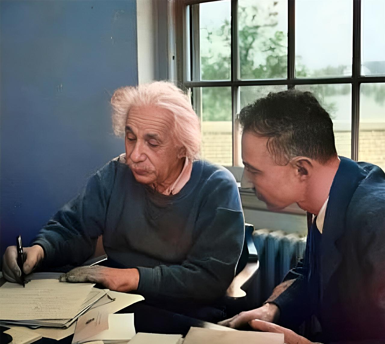 1930年代,爱因斯坦与奥本海默在一起讨论物理学问题。两人都是美籍犹太裔物理学家。虽然,奥本海默也是教授中的教授,但他在前辈爱因斯坦面前仍然像名学生。奥本海默比爱因斯坦要小整整25岁。 当爱因斯坦已经获得诺贝尔物理学奖的时候,奥本海默还没有踏入哈佛大学的校门。原本,他在这一年可以进入哈佛大学但因结肠炎不得不推迟一年进入大学。当奥本海默从哈佛毕业时,爱因斯坦已经成为物理学界的大咖。 即使后来许多物理学家也获得诺贝尔物理学奖,似乎与爱因斯坦的身份与地位相差无几,但他们仍然对爱因斯坦相当敬重。在他面前仍然像个学生一样。这其中就包、包括中国大名鼎鼎的物理学家,诺贝尔奖获得者杨振宁。