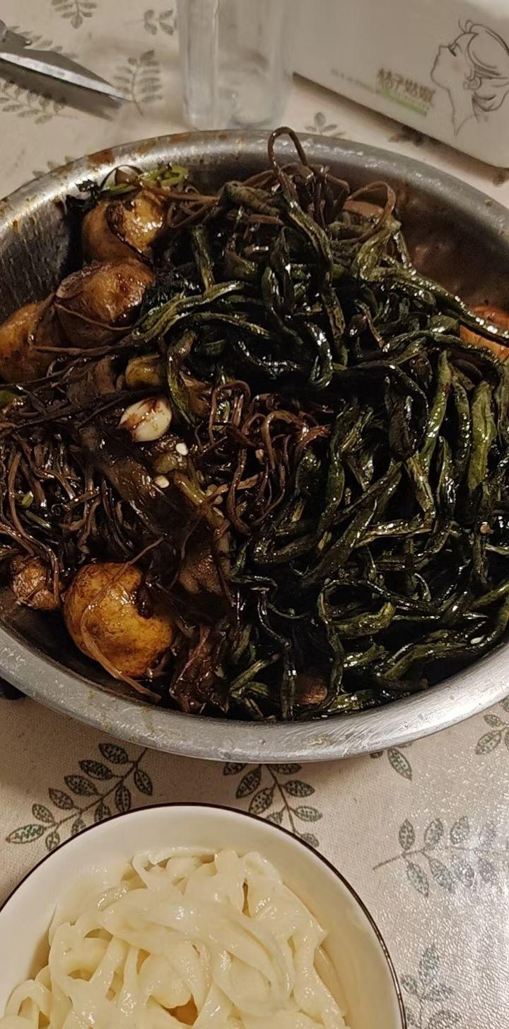 老婆新学的酱菜,我儿子直呼好吃猛多吃一碗大米饭。最近我老婆失业在家了,没事在家开始研究菜系了,今天做了一道酱菜,有地瓜梗,长豆角还有土豆还有一些配菜。晚上我儿子吃完叫我媳妇等我回家做给我吃,说老美味了多吃了一碗大米饭