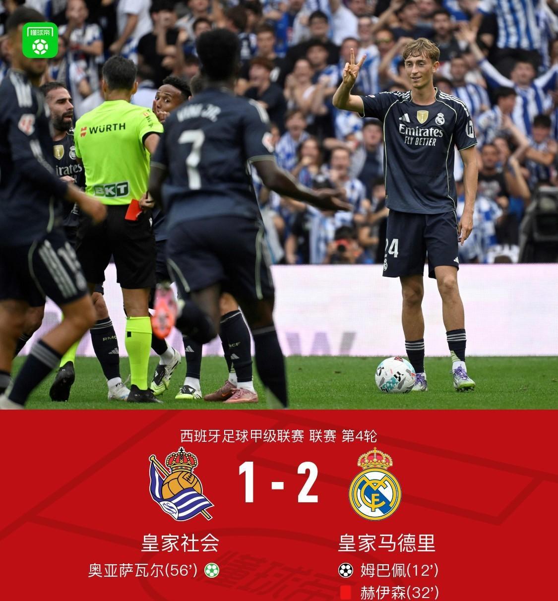 7后卫1中场1前锋,皇马主教练阿隆索真是神了,用铁桶阵换来了一场难得的胜利,10人皇马客场2:1艰难战胜皇家社会。不得不说,“法国超跑”姆巴佩一人扛着皇马获得一场胜利,一传一射奠定胜局。 这主场哨太明显了,西甲裁判的判罚争议和中超是半斤八两!难怪国际足联不用西班牙籍裁判,因为西班牙裁判容易明着黑。刚过半场,中间还有皇马队员,赫伊森这个动作就是黄牌动作,真不应该给红牌。 那么问题来了,您认为主裁判给赫伊森的红牌是不是误判?#皇家马德里# #姆巴佩#