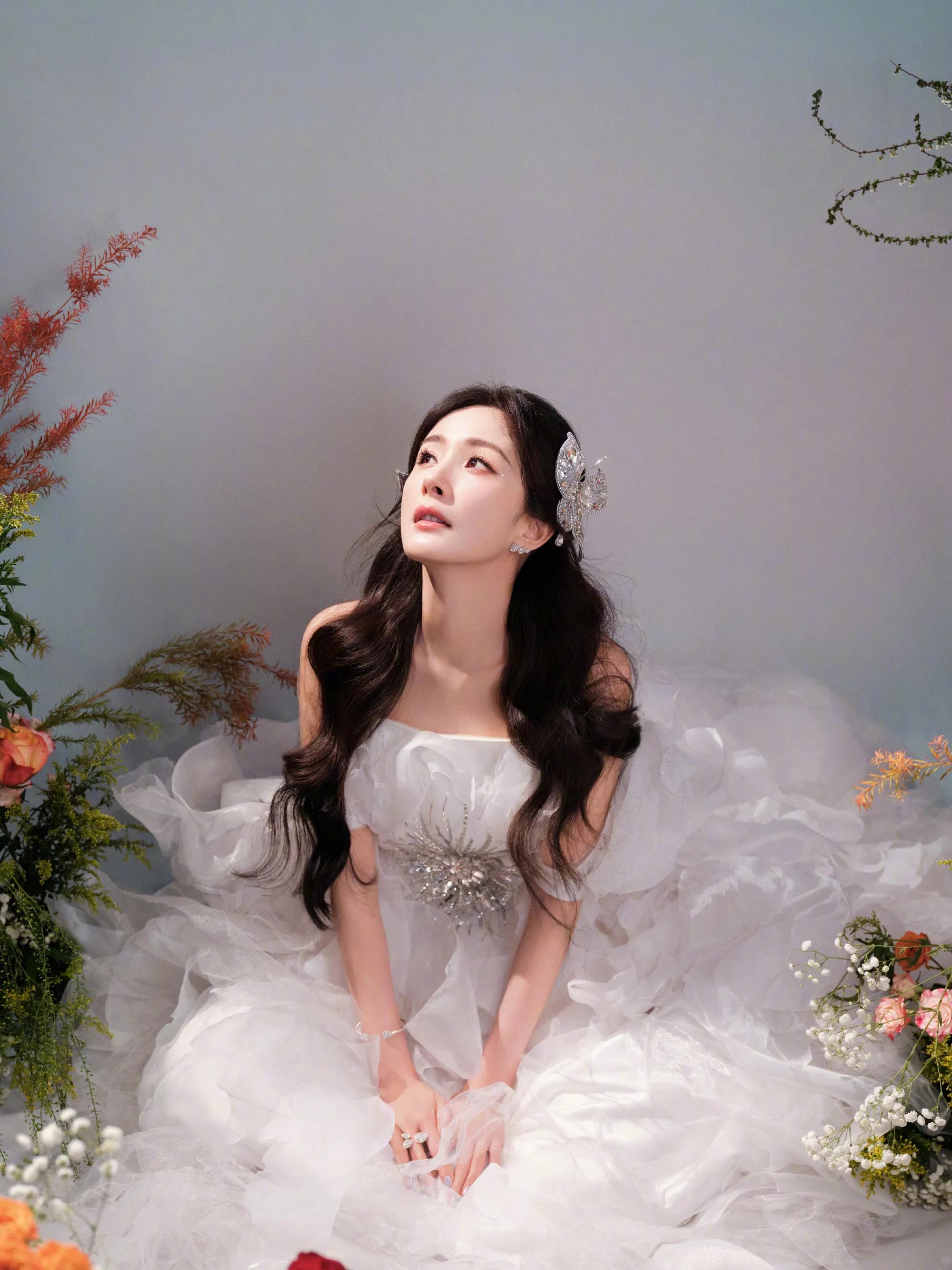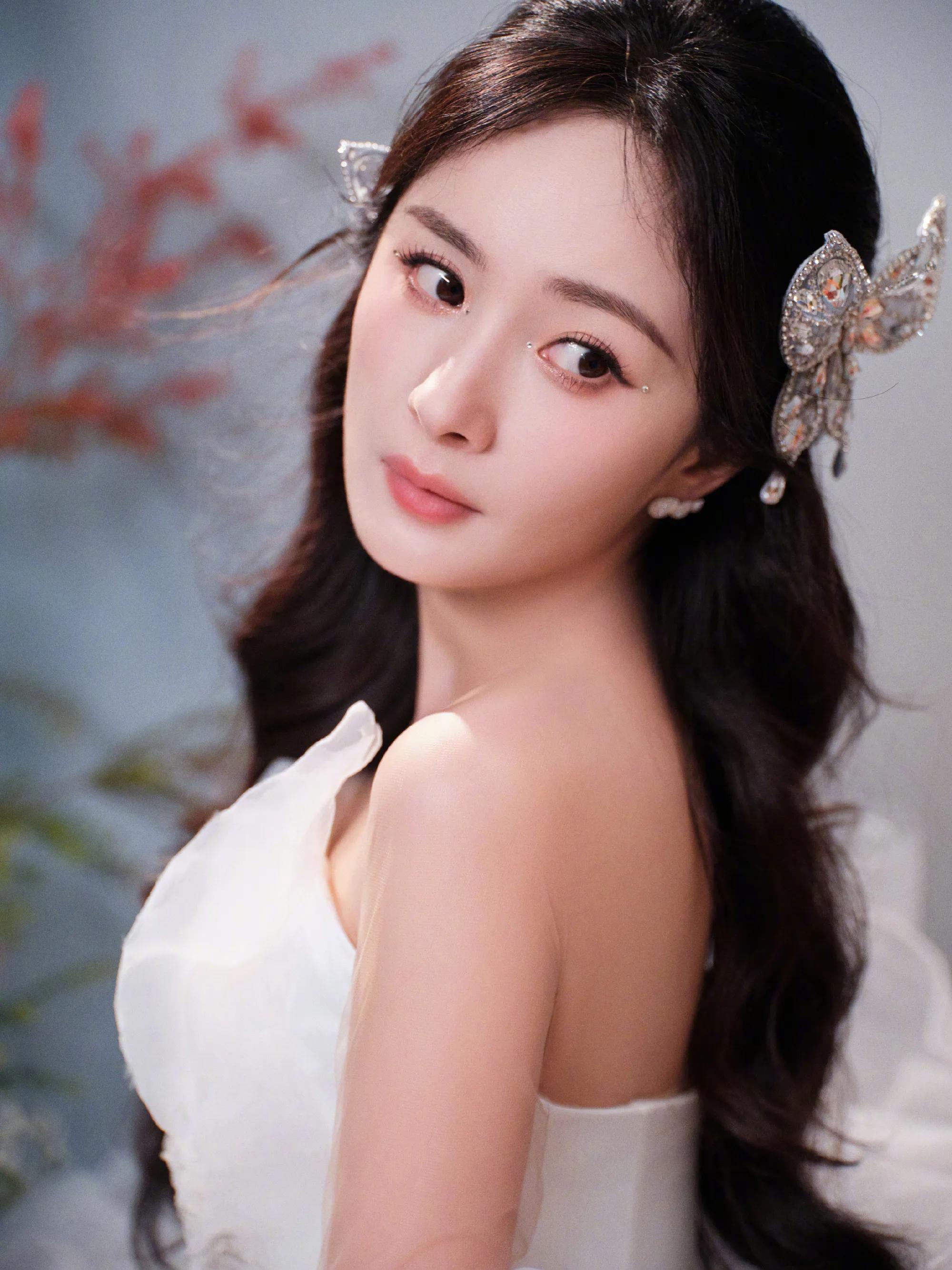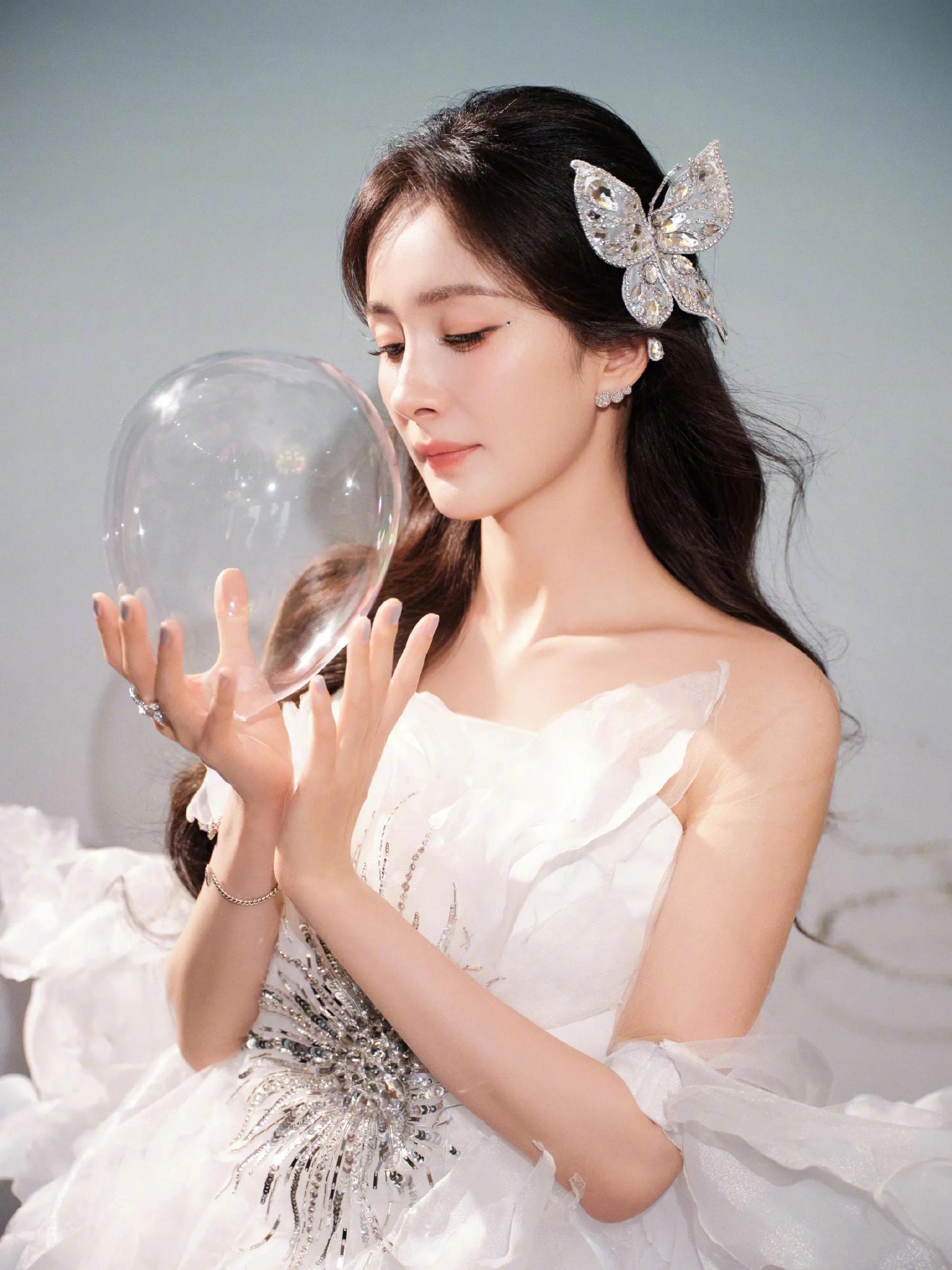 杨幂纯白抹胸礼裙,白色寓意纯洁与高贵