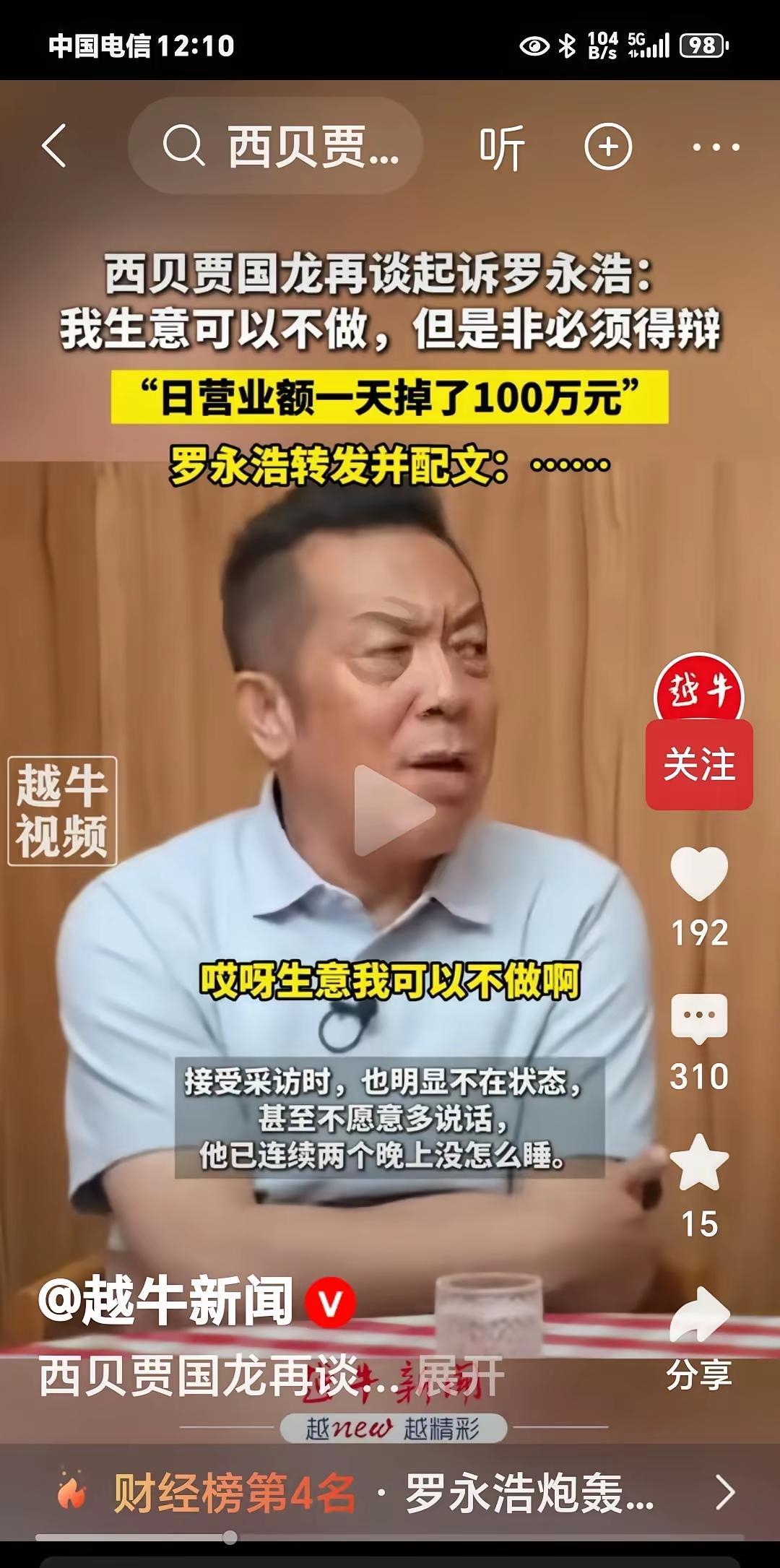 贾国龙:罗永浩是谁,网红带货主播啊,比小杨哥还火,敢黑我们,干他。