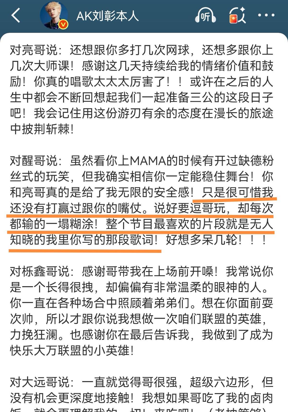 刘彰写长文告别披荆斩棘,他真的好爱苏醒啊[泣不成声],来的时候说很想逗他,可惜还
