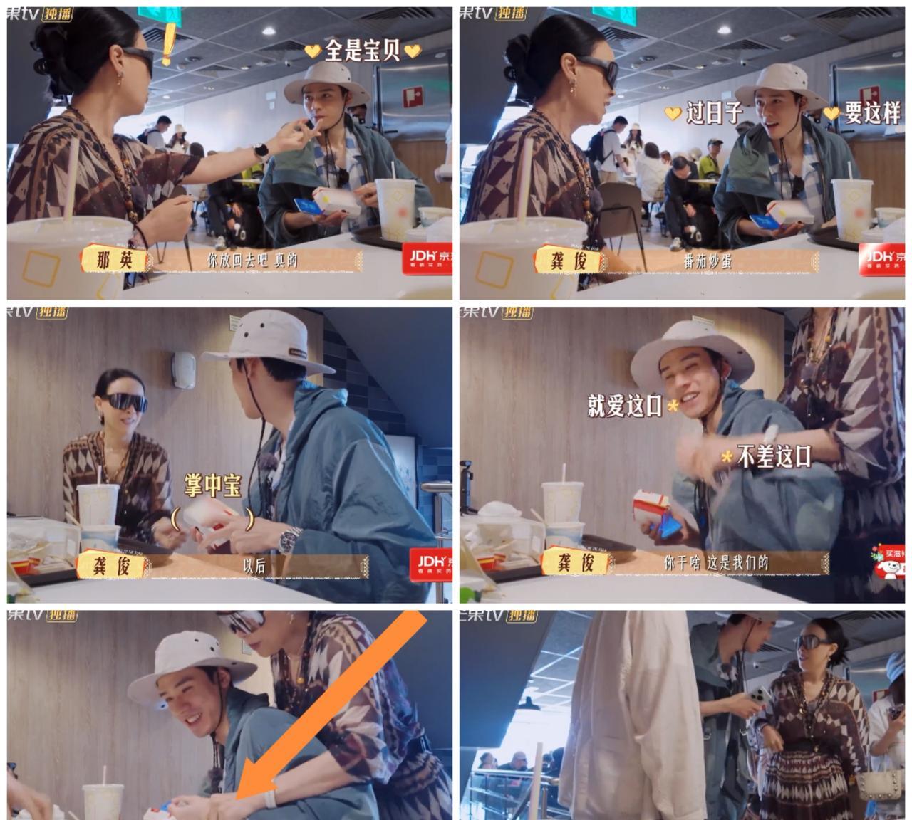 龚俊,那英,张晚意等7人吃完麦当劳, 龚俊把剩余番茄酱打包 那英看不下去,伸手就