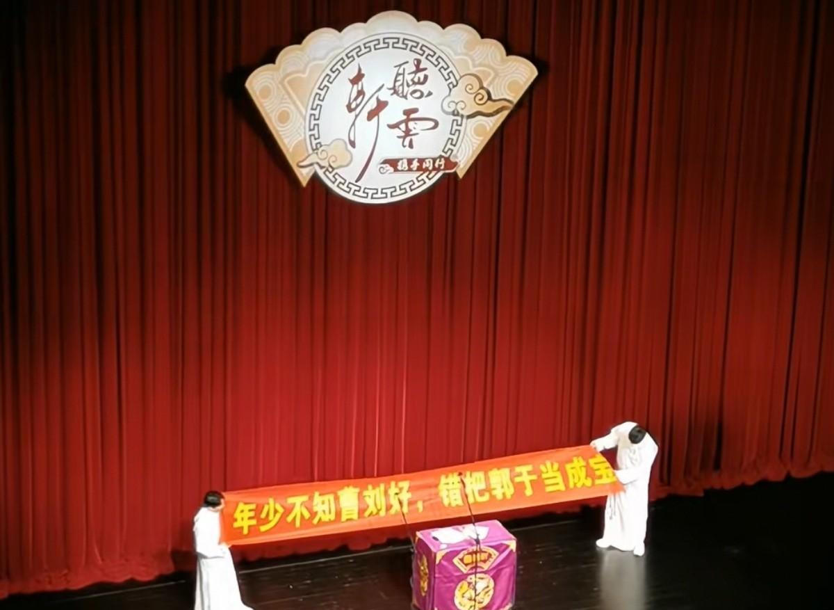 曹云金演出现场,粉丝送来一条横幅:横幅上赫然写着:"年少不知曹刘好,错把郭于