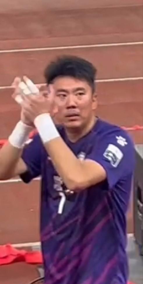 比赛结束了,我和许多观众一起,并没有急着离开,我们等着球员走过来—— 先是宿迁队球员来到他们球迷区,和他们互动拍照。然后顺着跑道向我们这边走过来。 加油!加油!大家热情地和他们打招呼,而此时此刻好像其他的语言都苍白,唯有加油声声代表千言万语。 常宝的队员是和宿迁队反方向的路线返场,他们先到了我们常宝的拉拉队区,只听到那边掌声雷动。 是的,我们拼到了最后,虽然1/2败北,但我们拼尽全力,我们虽败犹荣。 最激动人心的时刻来了,我们也不管三七二十一,从第三排跨到了第一排最前面,我们的球员过来了! 此时此刻,除了拍照都不知说啥好了。其实现在想想应该说“辛苦了!谢谢有你们!” 守门员顾志强走过来了,看他有点落寞的样子,心里一定在自责。毕竟今天是1/2的比赛结果呀! 但他奋力跳跃的样子真的最美!加油加油!你是最棒的!因为确实如果没有奋力扑出的几个球,比分肯定会拉大。 作为苏超联赛期间抽空结个婚的门将,我特别记得常州对阵镇江赢球后他嚎啕大哭的场面。 泪水表达了他对足球的一份热爱,对家乡的一种责任,对观众的一种尊重,对自己的一种激励,对压抑心情的一种释放! 谢谢有你,你是我们的骄傲,别难过!努力了就好!我们不会怪你的!